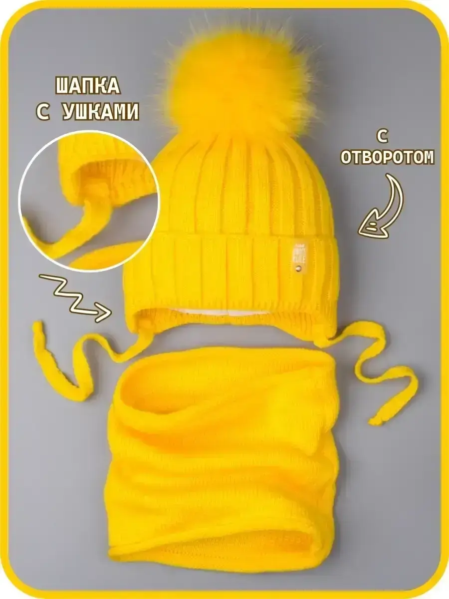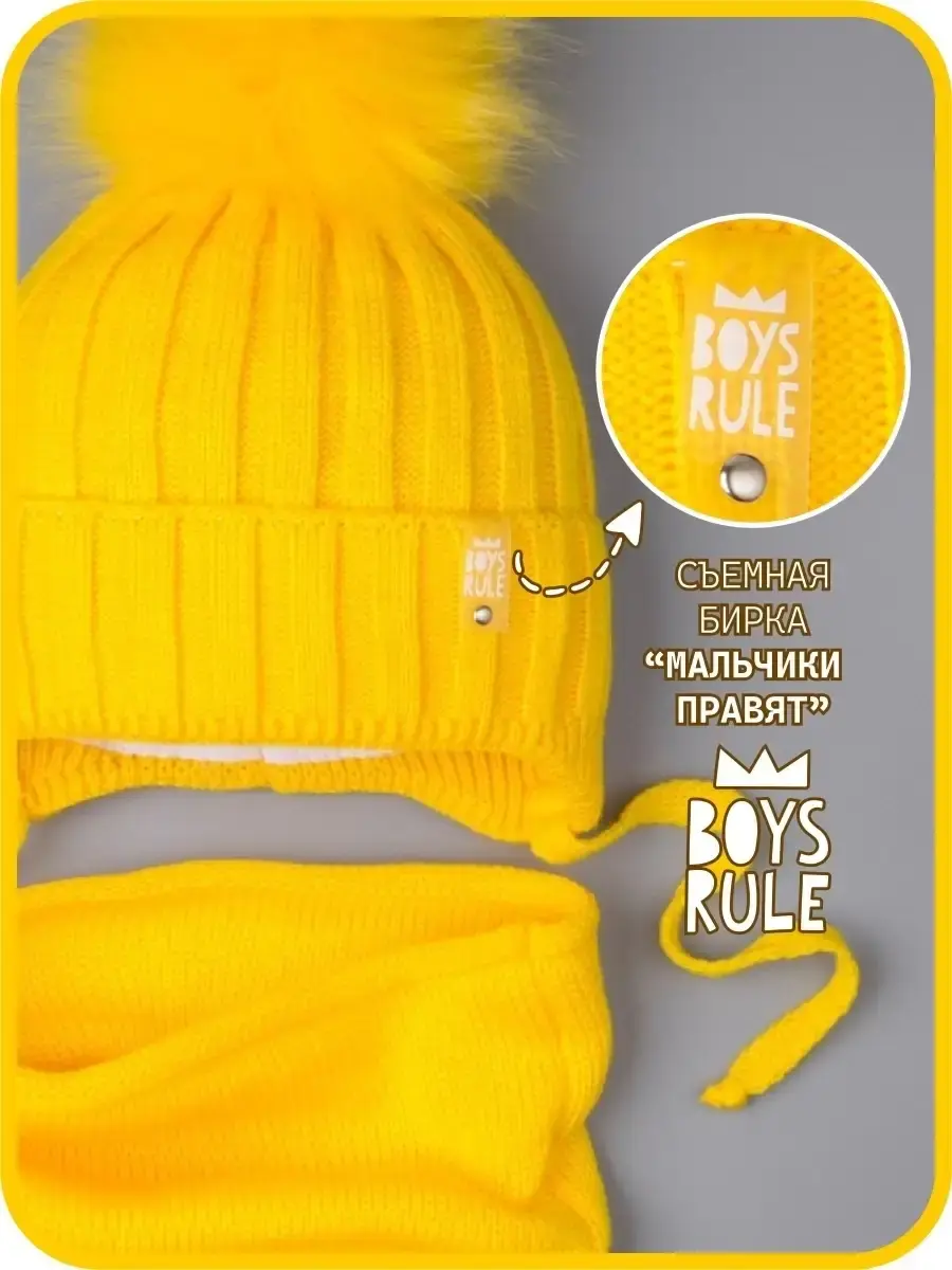 Лучшее решение для зимы - вязаный комплект для мальчика из шапки с завязками и снуда! Шапочка детская вязаная и шарф красиво завершат образ вашего ребенка! Головной убор декорирован помпоном из искусственного меха и съемной биркой. Снуд детский легко складывается гармошкой и надевается под капюшон верхней одежды. Он прекрасно тянется и не натирает шею ребенку благодаря качественной обработке краев. Шапка на завязках утеплена синтепоном, который спрятан под подкладкой из натурального хлопка. Это обеспечивает дополнительный комфорт и не дает голове малыша вспотеть. Зимний набор согреет в холодную ветреную погоду даже при - 25 С. Мягкое и теплое полотно сохранит первоначальную форму даже после долгой носки. Гипоаллергенный материал не вызовет раздражения на чувствительной коже. Cнуд и шапку от российского бренда РусБубон можно носить как вместе, так и совмещать с другими аксессуарами. Рекомендуем бережную стирку при 30 градусах. Сделано в России!