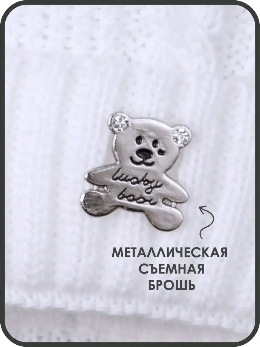 Шапка детская вязаная - это отличный вариант на весну, осень и теплую зиму для Вашего ребенка. Модный головной убор подойдет мальчикам и девочкам с первых месяцев жизни, а также на выписку для новорожденных. Мягкие завязки на изделии не оставляют следов, а плотный подворот хорошо защищает ушки и лоб от ветра и холода. Шапка для мальчика и для девочки хорошо сидит на голове, благодаря оптимальной глубине, а также не сползает во время активных движений. Модель выполнена из гипоаллергенный высококачественной пряжи, за счет чего она отлично тянется и держит форму даже после множества стирок. Головной убор дополнен подкладкой из натурального хлопка, поэтому не позволяет голове ребенка потеть, а значит снижает риск простудиться. Декорирована шапочка металлической брошкой в виде медвежонка. Для удобства подбора размера, мы прикрепили таблицу измерений с подробными рекомендациями. По уходу за изделием мы рекомендуем деликатную стирку (при t не более 30С), бережный отжим и сушку на горизонтальной поверхности. Головные уборы от бренда Uptime - это высокое качество, стиль и непревзойденный комфорт!