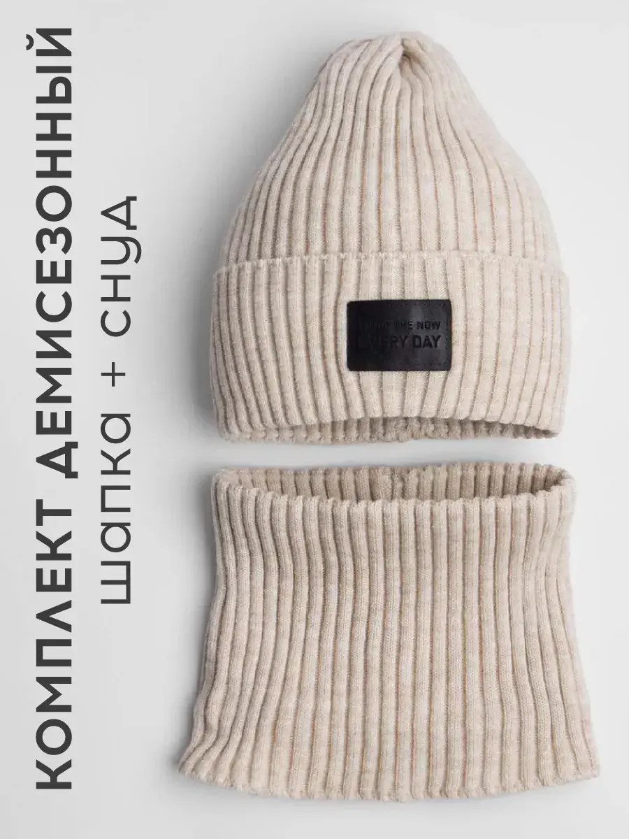 Шапка детская и снуд из плотного трикотажа станут прекрасным вариантом для детей на осень и теплую зиму. Демисезонный дуэт создаст неповторимый образ, а его универсальный дизайн подойдет как для мальчика, так и для девочки.