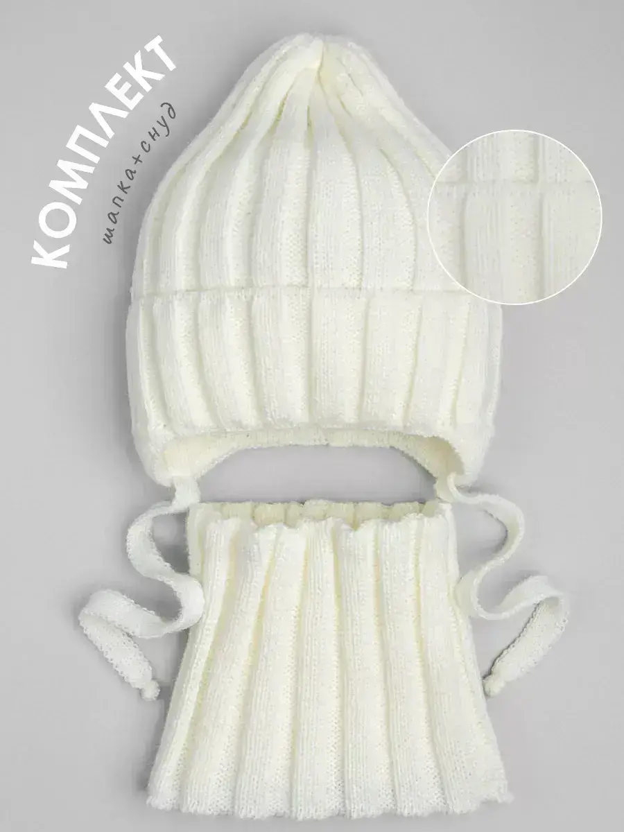 Демисезонная шапка для девочек и мальчиков со снудом — это идеальный выбор для холодного времени года. Незаменимый детский комплект для осени и весны. Шапка и снуд для детей выполнены вязкой "лапша" из мягкой качественной пряжи (в составе гипоаллергенного акрила), которая обеспечивает комфорт и защиту от холода. Благодаря большому количеству расцветок модель подходит как мальчикам, так и девочкам. Шапочка на завязках хорошо фиксируется и предотвращает сползание. Плотный отворот защищает уши и шею от сильного ветра. Отсутствие декора и фурнитуры делает этот дуэт универсальным для создания модных образов. Изделие снабжено хлопковой подкладкой, которая отлично держит тепло и не дает голове ребенка вспотеть. Широкий размерный ряд позволит выбрать головной убор как для малышей, так и для подростков с 9 месяцев до 10 лет. Вязаный детский набор станет прекрасным вариантом для тех, кто ищет стильный и практичный аксессуар для своих детей! Приятных Вам покупок!