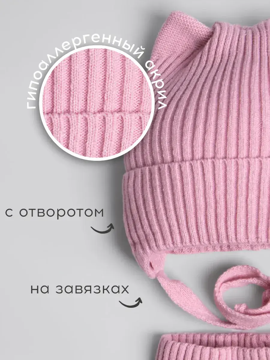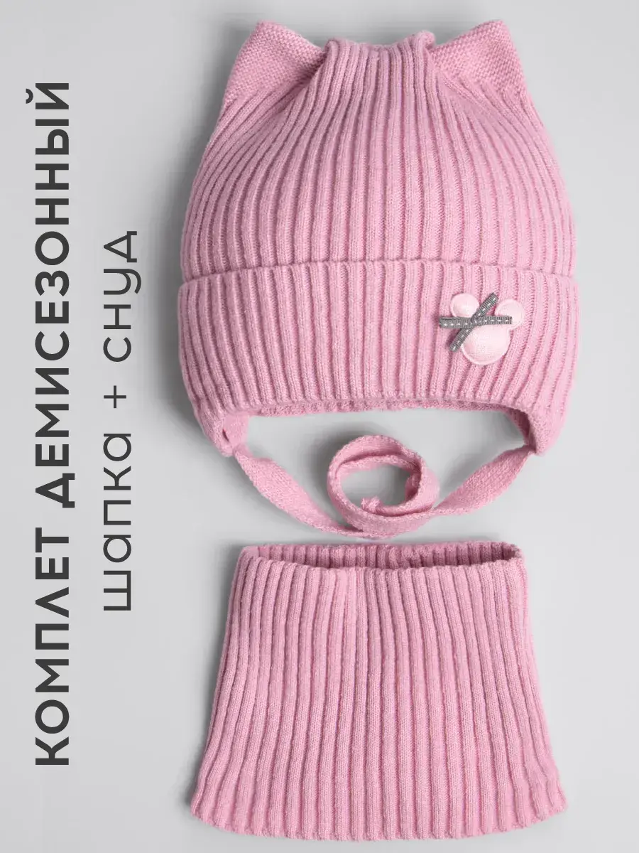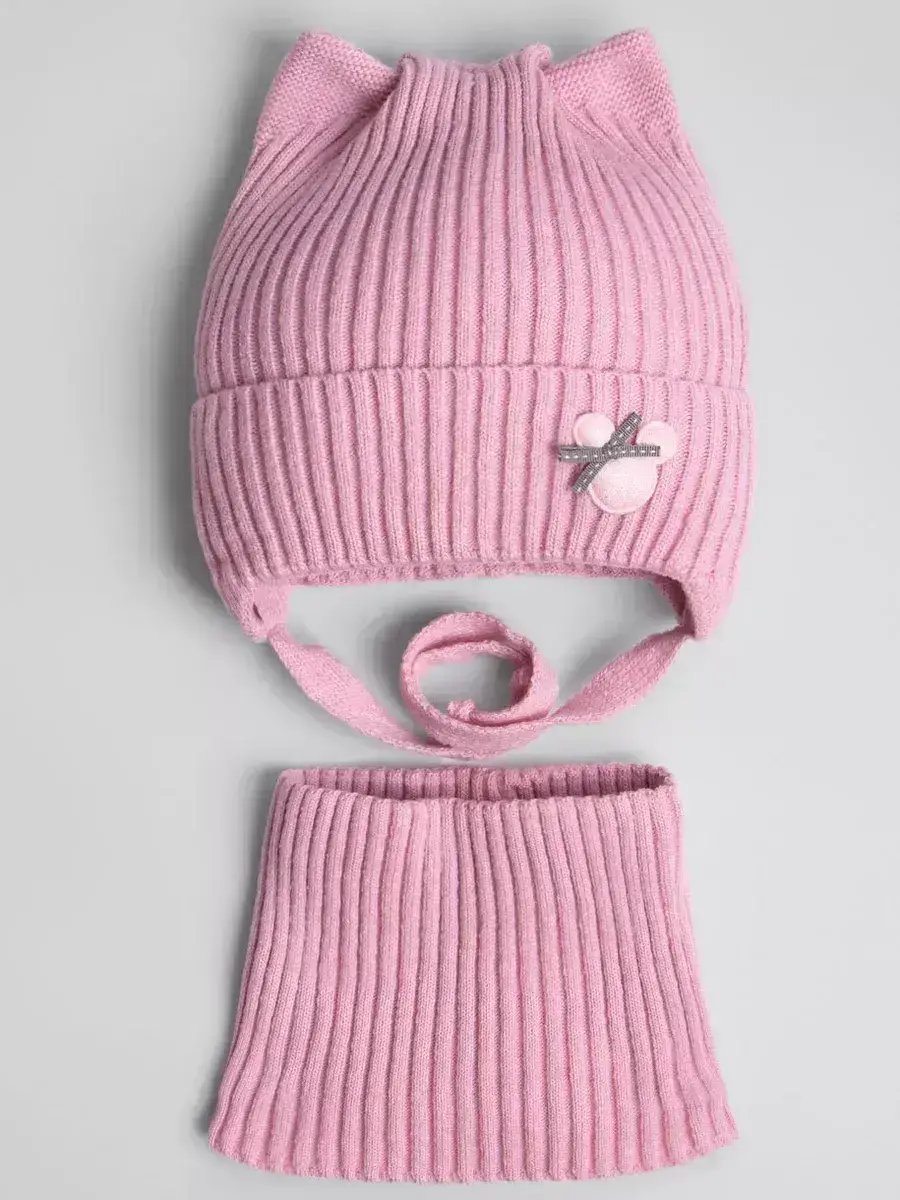 SWM-210/00-0033807/Шапка с ушками и снуд/розовый