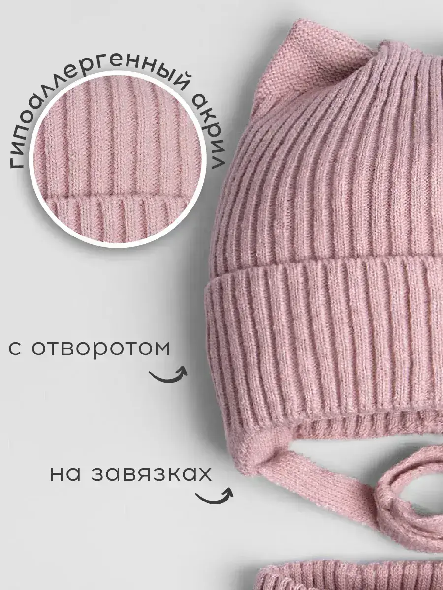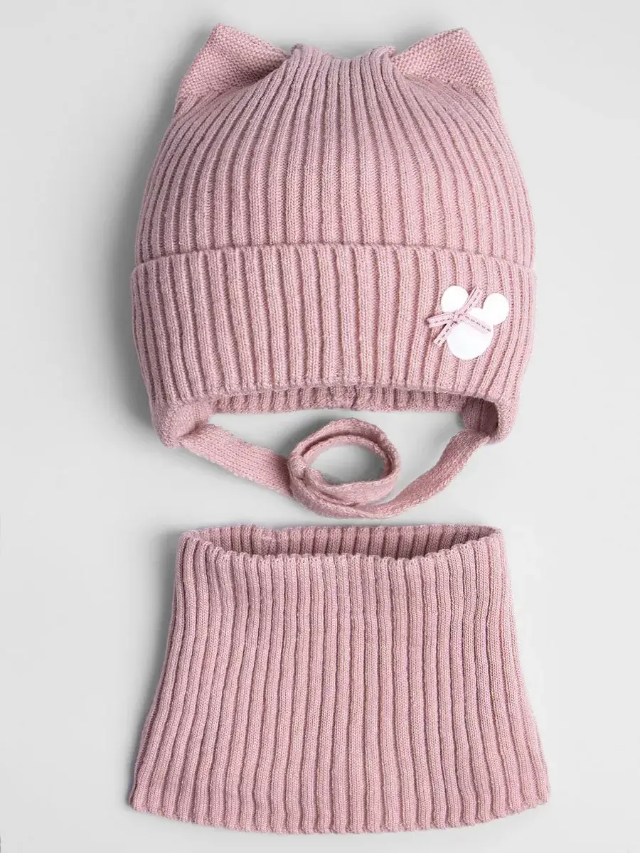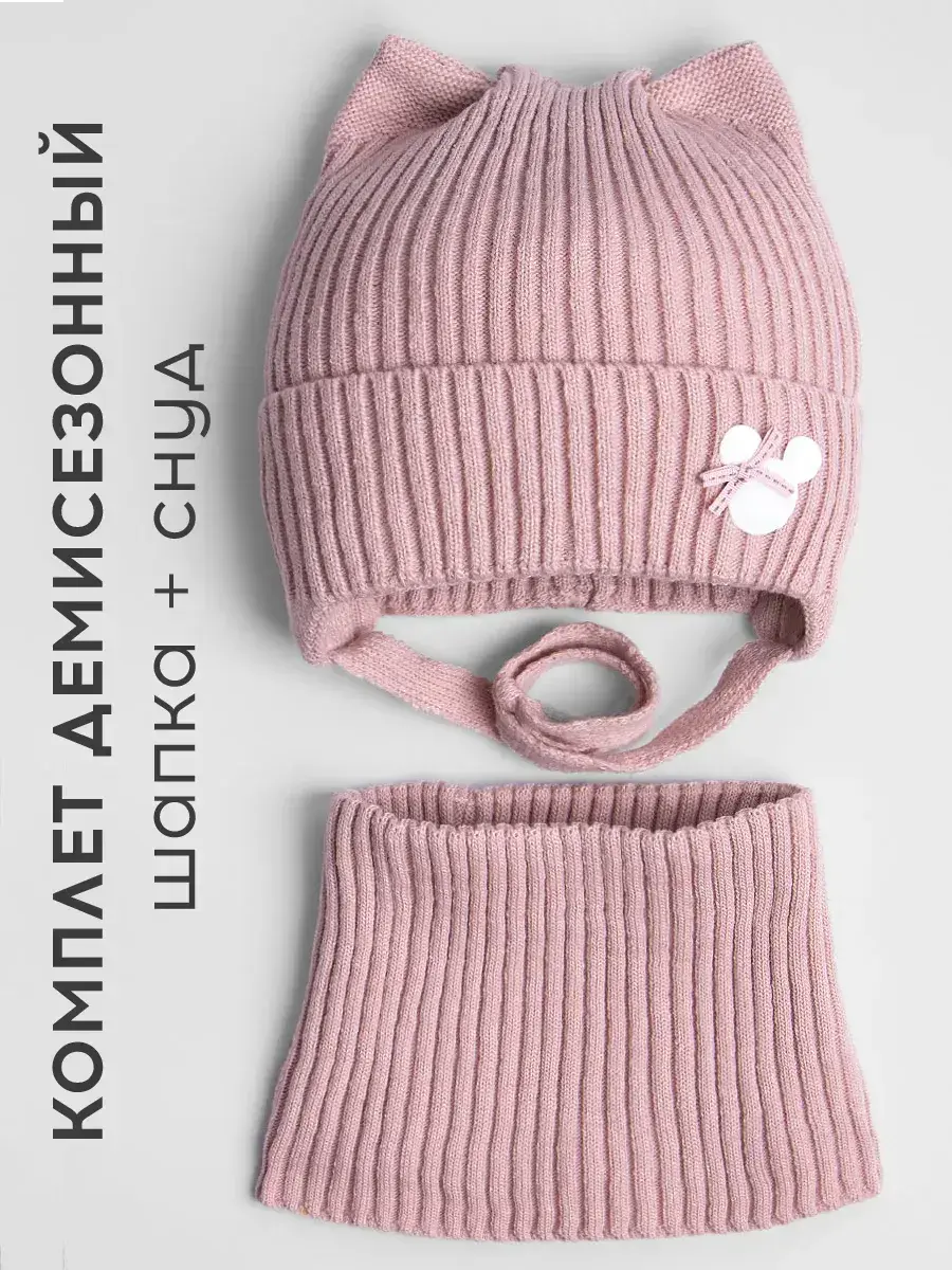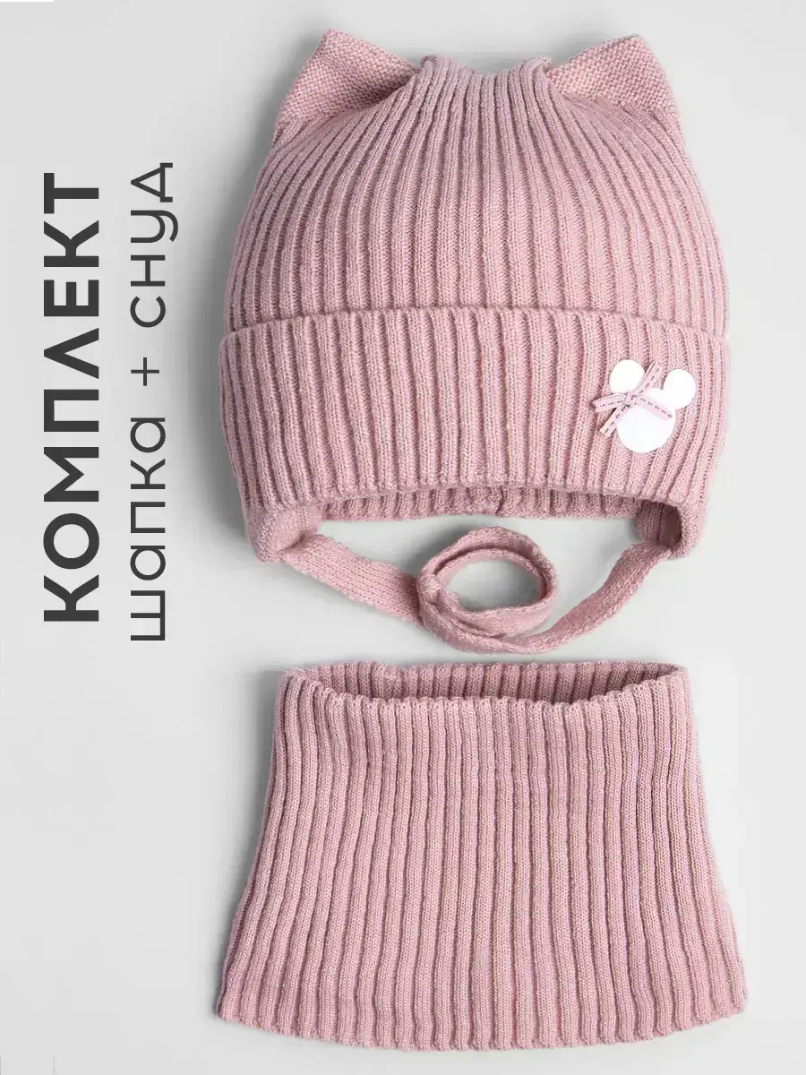SWM-210/00-0033802/Шапка с ушками и снуд/пудровый