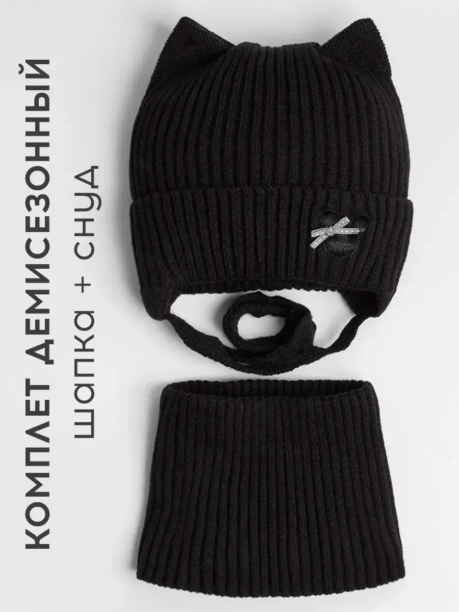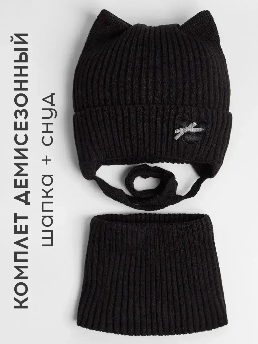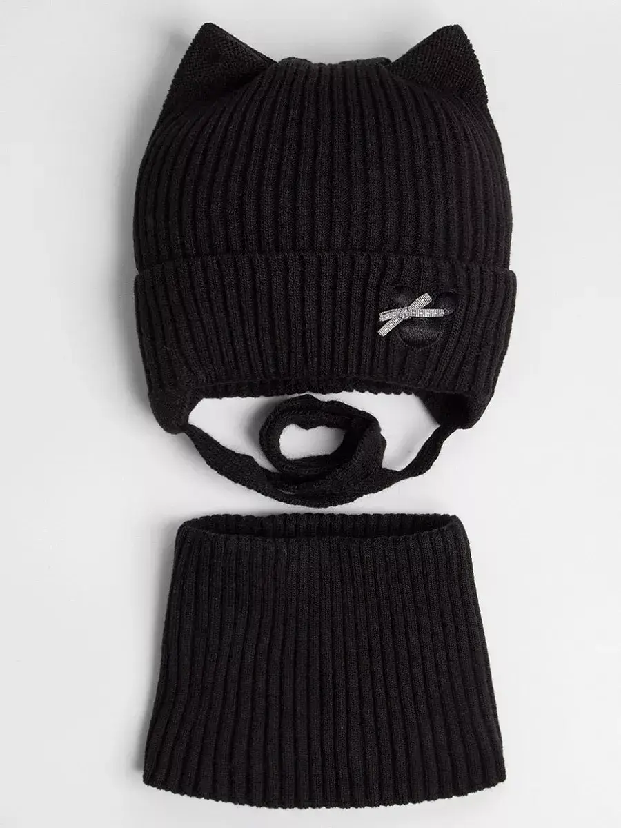 SWM-210/00-0033804/Шапка с ушками и снуд/черный