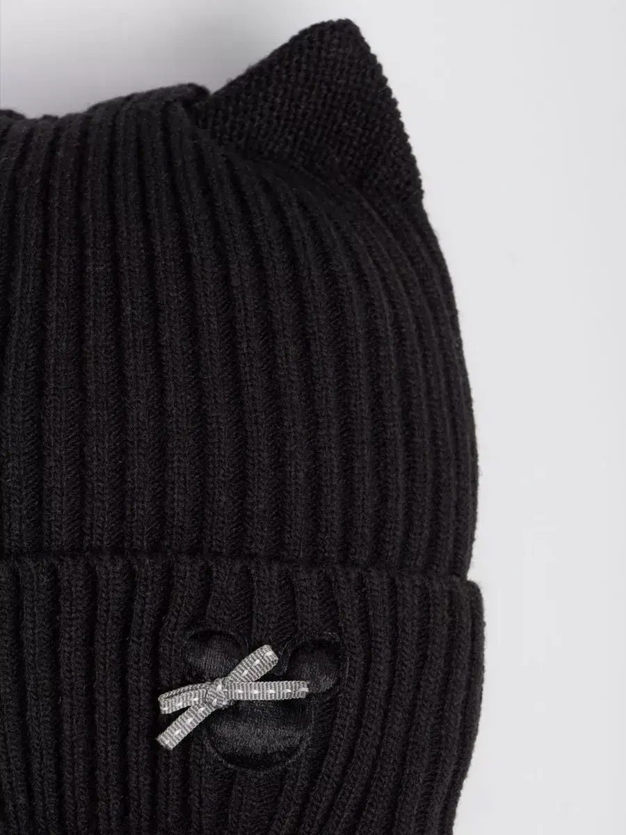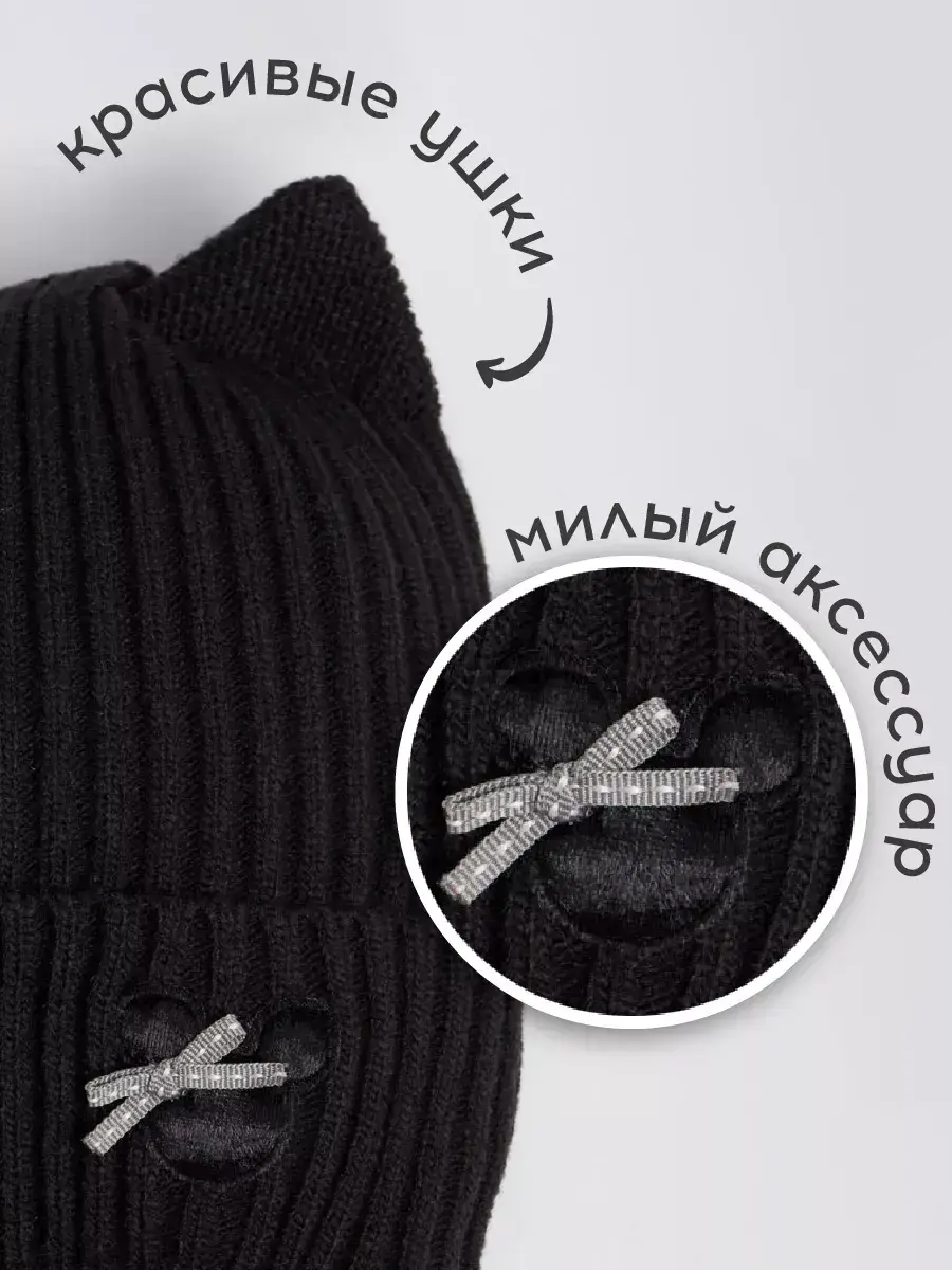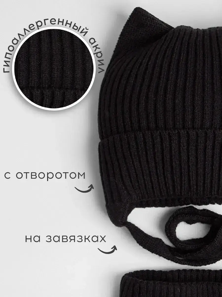SWM-210/00-0033804/Шапка с ушками и снуд/черный