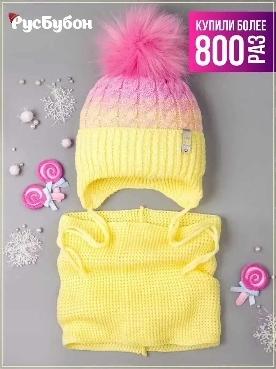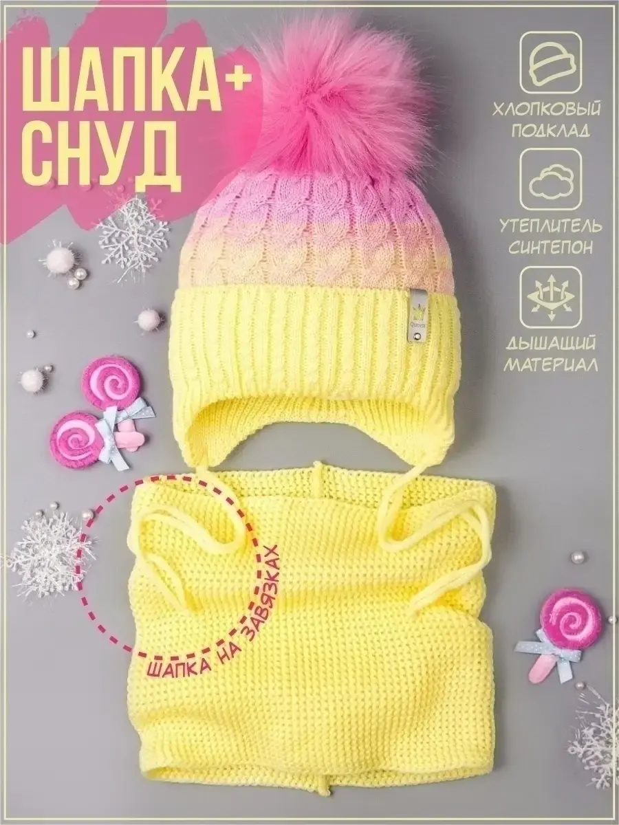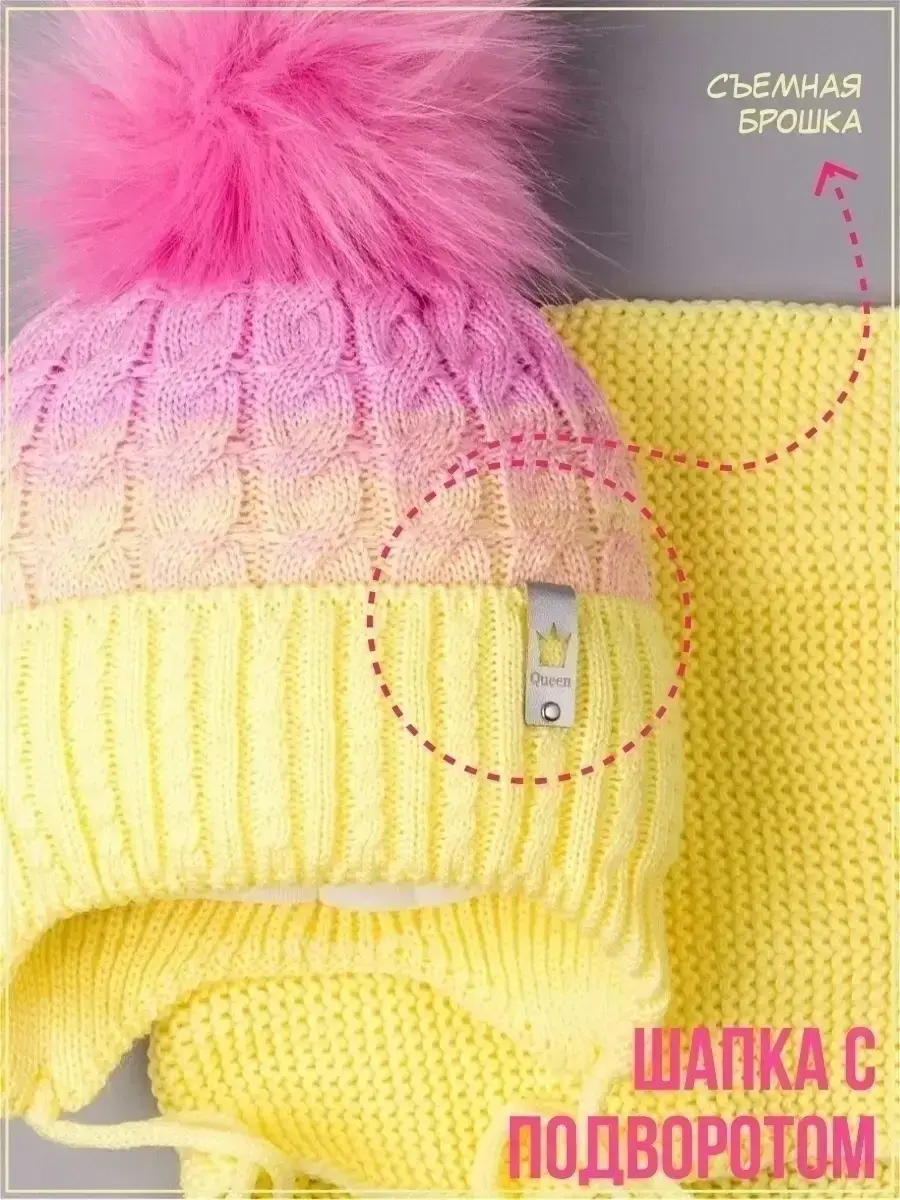 Шапка детская для девочки в комплекте со снудом - это отличное решение на зиму и холодную осень. Легкая, но теплая вязаная зимняя шапочка отлично защитит от ветра и согреет ребёнка даже в самую морозную погоду при -25 С. Головной убор детский утеплен синтепоном, который спрятан под хлопковой подкладкой, благодаря которой голова ребенка не будет потеть. Снуд детский прекрасно тянется, не колется и хорошо растягивается. Его удобно носить как под верхней одеждой, так и заправив под капюшон, заменив им классический шарф. Большое разнообразие цветов поможет выбрать зимний комплект под любой наряд Вашей малышки. Оригинальная брошка с короной легко отстегивается на время ухода за изделием. Красивый помпон из искусственного меха мы рекомендуем распушить феном для придания объёма. Наш зимний комплект для девочки просто незаменим для школы, детского сада и прогулок на свежем воздухе. В фотографиях мы прикрепили удобную таблицу, с помощью которой Вы легко сможете подобрать подходящий размер согласно возрасту и объему головы. Модель выполнена из высококачественной пряжи (в составе акрил), поэтому сохранит первоначальный внешний вид и форму даже после множества стирок. Не упустите возможность порадовать своего ребенка таким практичным и красивым комплектом этой зимой. Сделано в России.