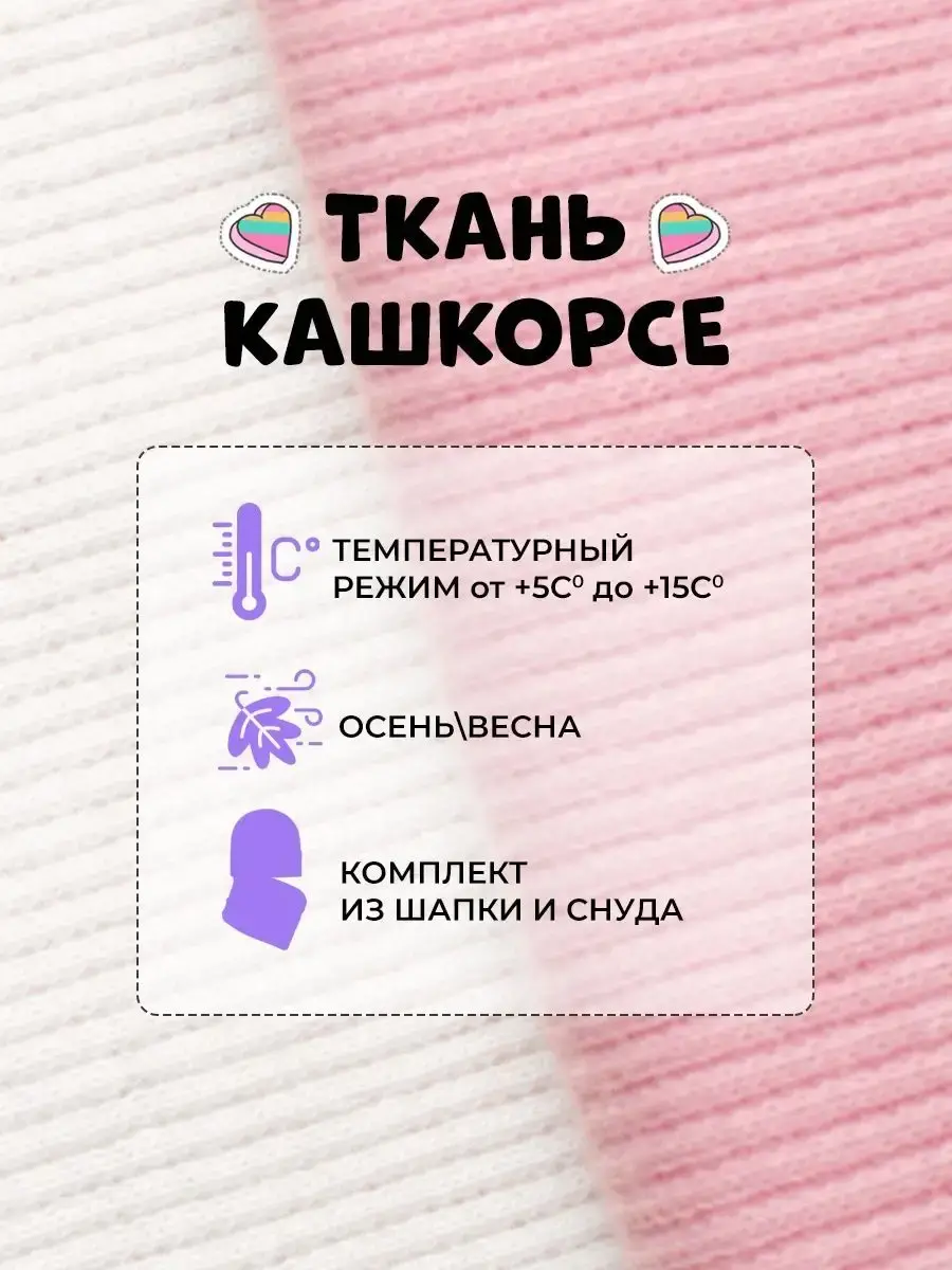 Шапка для девочки трикотажная - это универсальная и практичная модель на осень и прохладное лето. Демисезонный головной убор обязательно должен быть у каждой юной модницы и желательно в разных цветах! Милая шапочка с бантиками и ушкам котика привнесет нежности в любой образ! Шапка детская со снудом подойдет для детей от 3 месяцев, разнообразные комбинации расцветок сочетаются с любым гардеробом. Она выполнена из хлопкового трикотажа кашкорсе (в рубчик) с небольшим добавлением лайкры, благодаря чему изделие хорошо держит форму и плотно облегает голову ребенка. Широкий отворот дает возможность регулировать глубину посадки, что очень удобно. Базовая модель подойдет в качестве повседневного варианта в детский сад, школу, на прогулку и даже тренировку на свежем воздухе. Снуд детский и головной убор можно носить по отдельности или комбинировать с другими аксессуарами в одежде. Для того, чтобы аксессуар радовал Вас дольше, мы настоятельно рекомендуем Вам придерживаться рекомендаций по уходу (бережная стирка не более 30С). В нашем магазине представлен большой ассортимент детских шапок на любой сезон! Сделано в России.