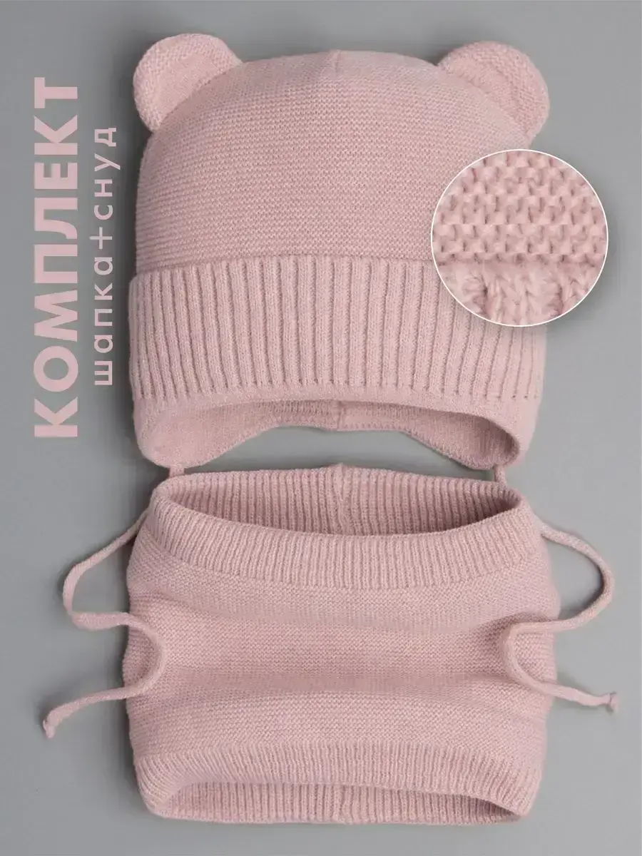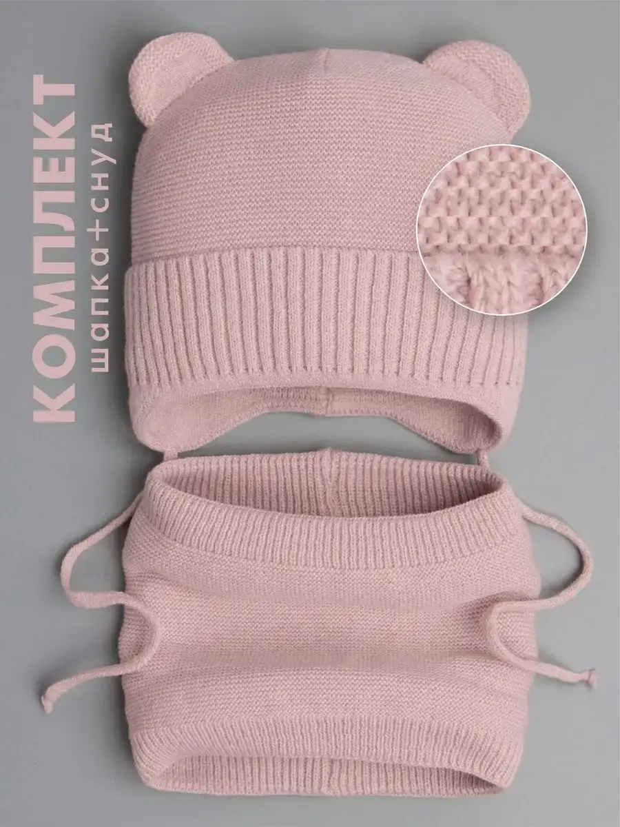 Шапка детская для девочек и мальчиков с ушками и снуд - это подходящий вариант на осень и на теплую зиму. Головной убор подойдет как мальчикам, так и девочкам. Шапочка детская на завязках дополнена подкладкой из натурального хлопка, поэтому ребенку будет в ней очень тепло и комфортно в любую погоду, а голова не будет потеть. Мягкие завязки-ленты на демисезонной модели отлично фиксируют, не оставляя следов на чувствительной коже. Размерный ряд изделия рассчитан для детей от шести месяцев до десяти лет. Вязаный детский комплект для мальчика представлен в самых модных цветах и Вы без труда подберете нужный набор к гардеробу малыша. Шапочка выполнена из пряжи высокого качества (в составе гипоаллергенный акрил), поэтому не растянется и не потеряет форму даже после множества стирок. Шапка демисезонная для девочки рассчитана на температурный режим от +5 до -10С и незаменима для активного отдыха на свежем воздухе и повседневной носки в детский сад и школу. Для того чтобы изделие радовало Вас дольше, мы рекомендуем бережный уход при t не более 30С и сушку на горизонтальной поверхности. В нашем магазине Вы также найдете и другие головные уборы и аксессуары на любой сезон! Приятных Вам покупок!