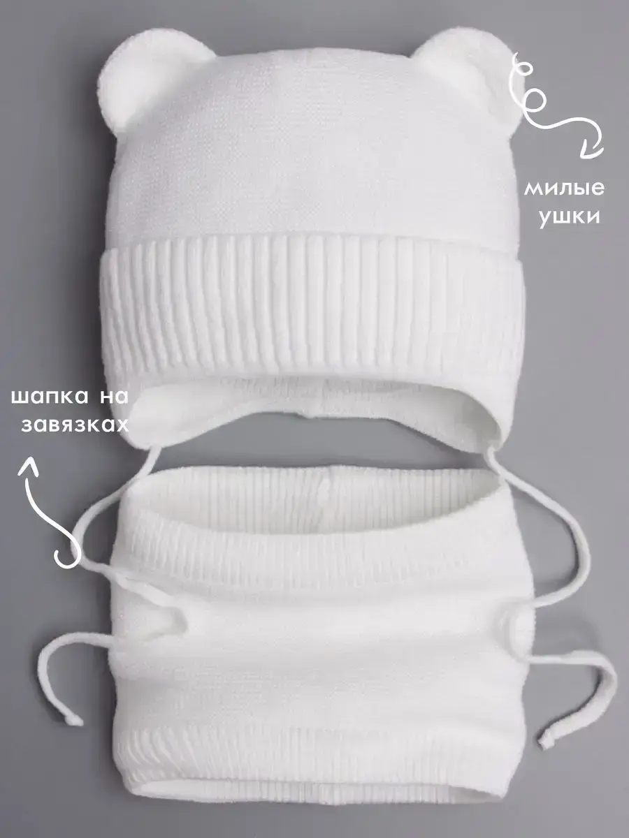Шапка детская для девочек и мальчиков с ушками и снуд - это подходящий вариант на осень и на теплую зиму. Головной убор подойдет как мальчикам, так и девочкам. Шапочка детская на завязках дополнена подкладкой из натурального хлопка, поэтому ребенку будет в ней очень тепло и комфортно в любую погоду, а голова не будет потеть. Мягкие завязки-ленты на демисезонной модели отлично фиксируют, не оставляя следов на чувствительной коже. Размерный ряд изделия рассчитан для детей от шести месяцев до десяти лет. Вязаный детский комплект для мальчика представлен в самых модных цветах и Вы без труда подберете нужный набор к гардеробу малыша. Шапочка выполнена из пряжи высокого качества (в составе гипоаллергенный акрил), поэтому не растянется и не потеряет форму даже после множества стирок. Шапка демисезонная для девочки рассчитана на температурный режим от +5 до -10С и незаменима для активного отдыха на свежем воздухе и повседневной носки в детский сад и школу. Для того чтобы изделие радовало Вас дольше, мы рекомендуем бережный уход при t не более 30С и сушку на горизонтальной поверхности. В нашем магазине Вы также найдете и другие головные уборы и аксессуары на любой сезон! Приятных Вам покупок!