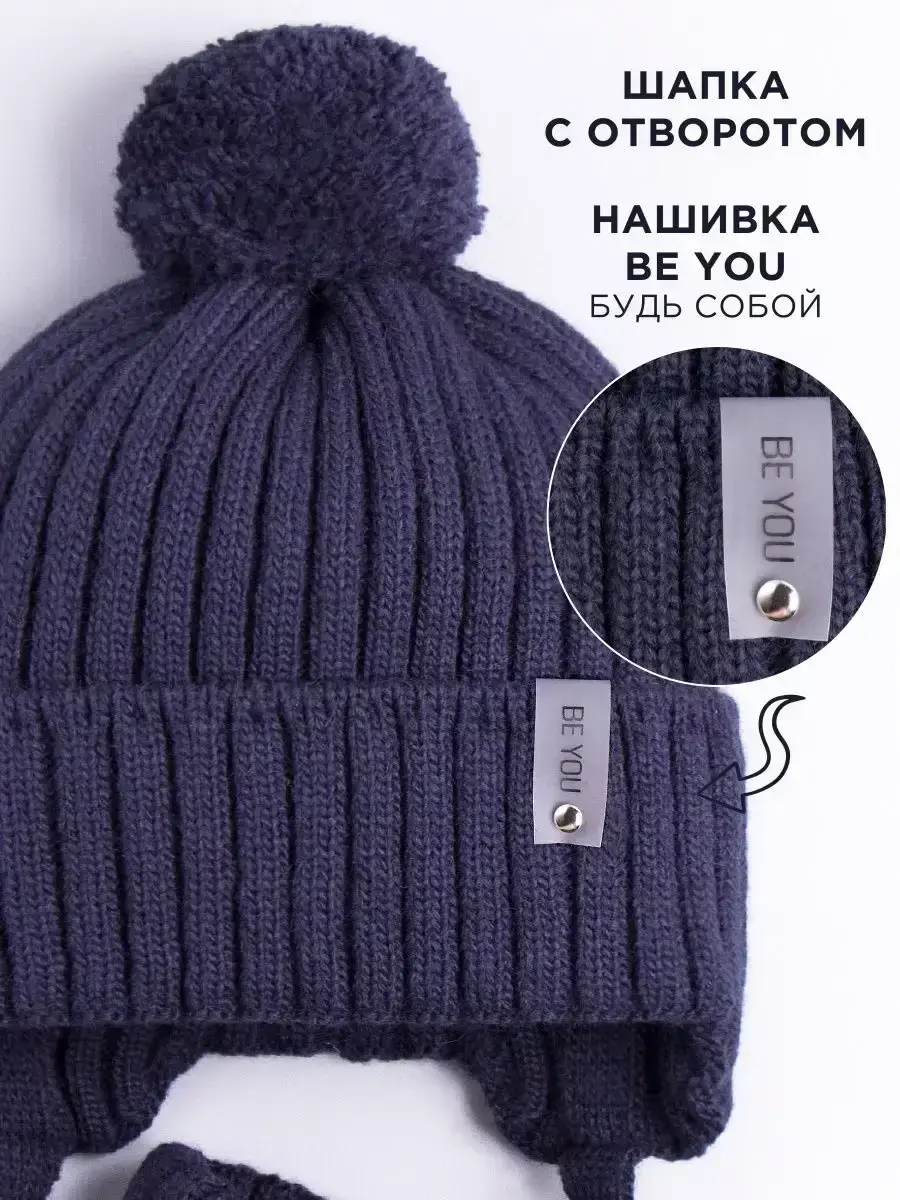 Детская вязаная шапочка на завязках с помпоном — идеальный выбор для малышей в прохладное время года!