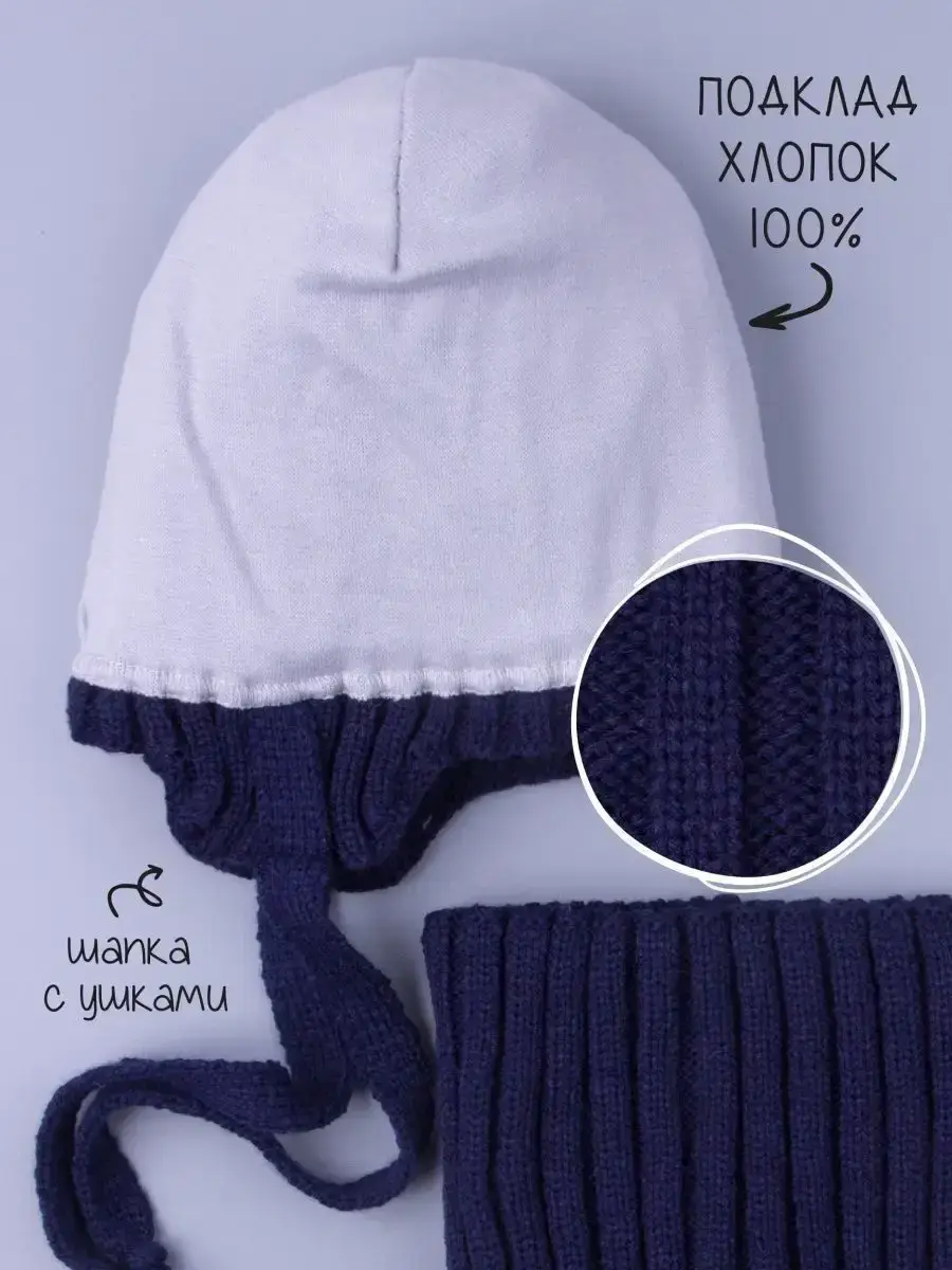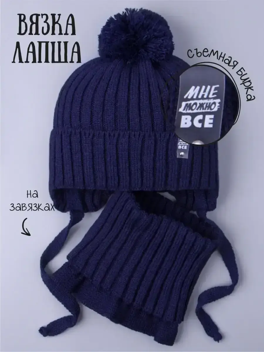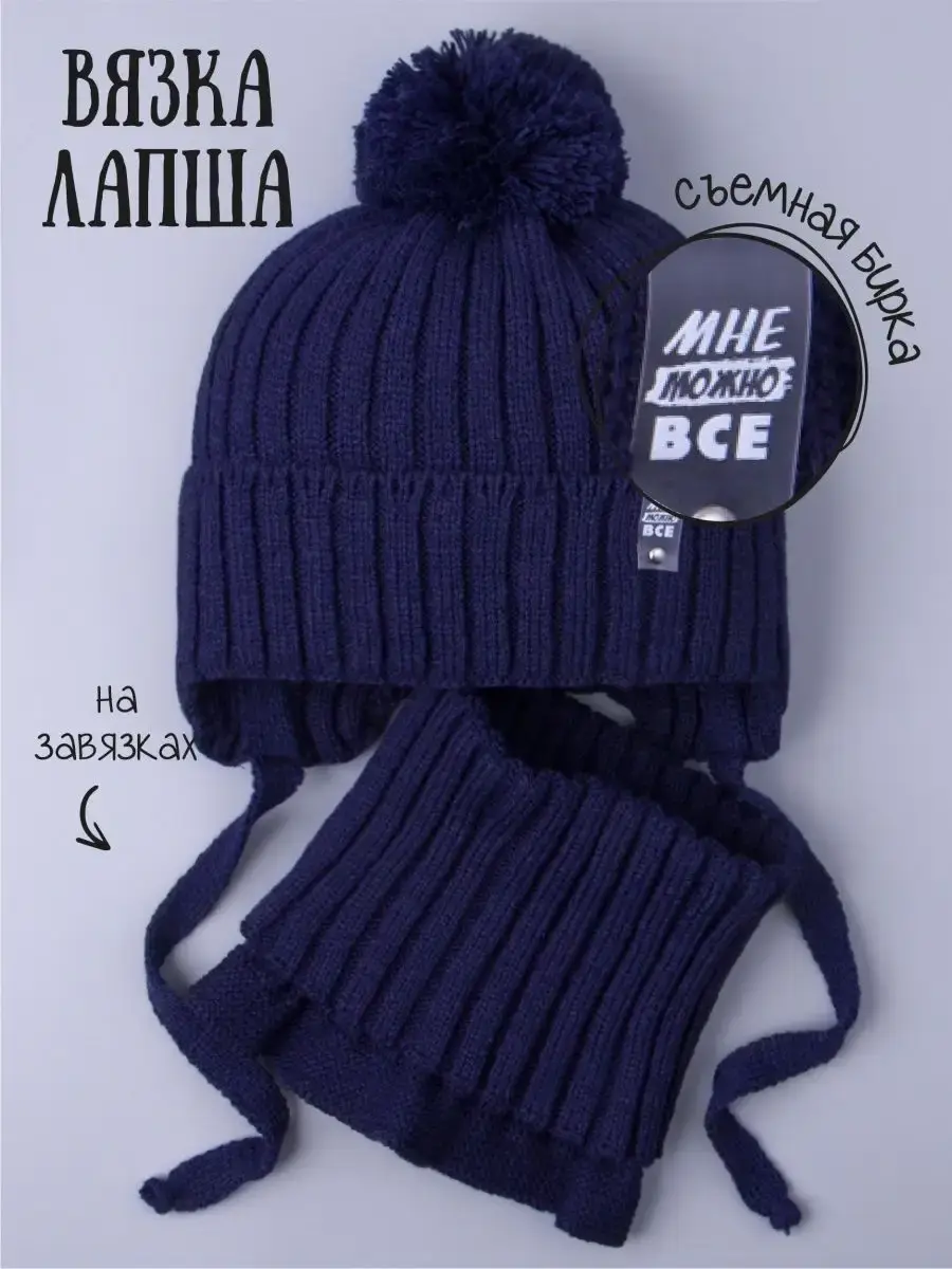 Шапка для мальчика демисезонная со снудом от бренда Ok Top - это идеальный вариант на осень и на теплую зиму. Головной убор подойдет к любому гардеробу ребенка. Декорирована осенняя вязаная шапочка съемной биркой с надписью "Мне можно все", которую на время ухода за изделием можно легко отстегнуть. Данная модель сочетается с любым видом верхней одежды и стильно дополняет образ. Шапка на осень снабжена хлопковой подкладкой, которая не дает голове ребенка вспотеть, а значит снижает риск простудиться. Широкие завязки оптимальной длины без труда завязываются в бант. Плотный отворот надежно защищает уши и шею малыша от холода ветра. Вязаный снуд отлично тянется и его без труда можно носить под капюшоном верхней одежды. Шарф детский очень мягкий, не колется и не раздражает кожу. Большой размерный ряд позволит Вам выбрать комплект для мальчика от двух до десяти лет, что делает эту шапку универсальным решением для школы и детского сада.