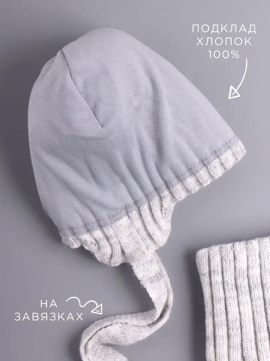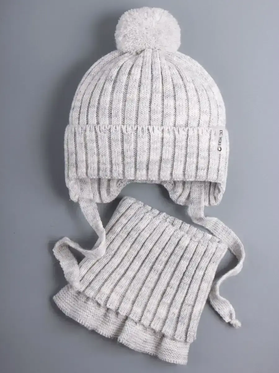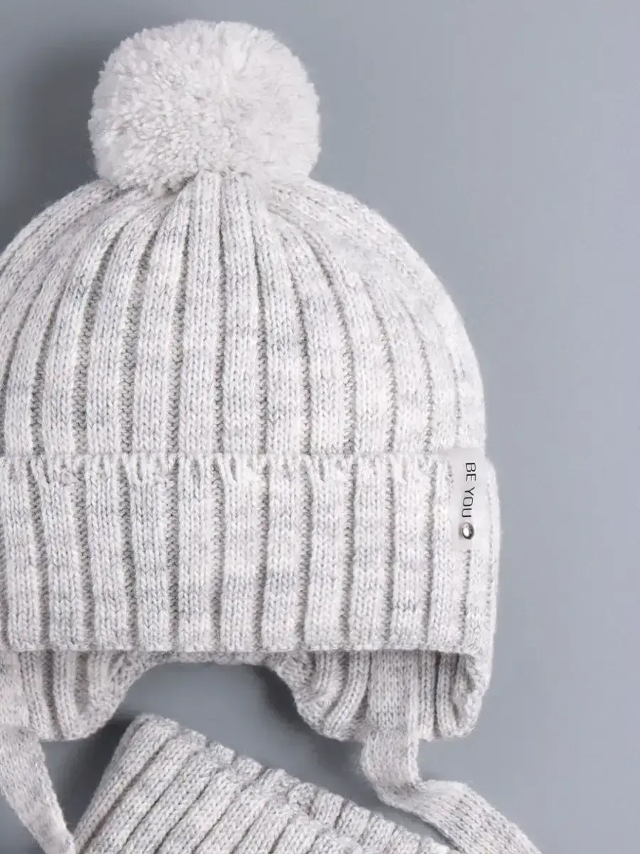 Детская вязаная шапочка на завязках с помпоном — идеальный выбор для малышей в прохладное время года!