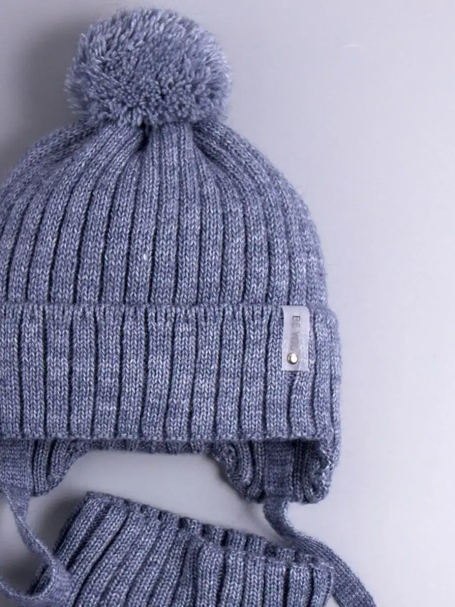 Детская вязаная шапочка на завязках с помпоном — идеальный выбор для малышей в прохладное время года!