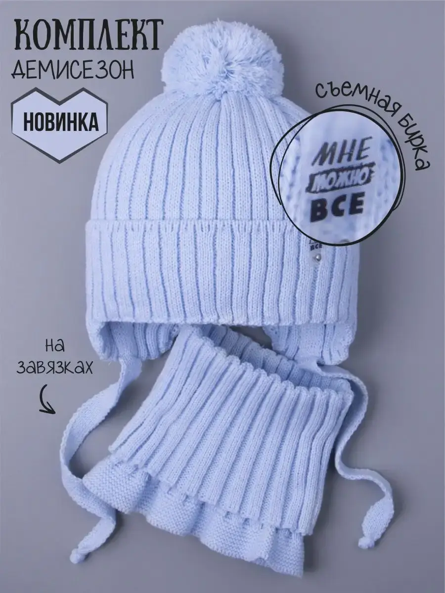 Шапка для мальчика демисезонная со снудом от бренда Ok Top - это идеальный вариант на осень и на теплую зиму. Головной убор подойдет к любому гардеробу ребенка. Декорирована осенняя вязаная шапочка съемной биркой с надписью "Мне можно все", которую на время ухода за изделием можно легко отстегнуть. Данная модель сочетается с любым видом верхней одежды и стильно дополняет образ. Шапка на осень снабжена хлопковой подкладкой, которая не дает голове ребенка вспотеть, а значит снижает риск простудиться. Широкие завязки оптимальной длины без труда завязываются в бант. Плотный отворот надежно защищает уши и шею малыша от холода ветра. Вязаный снуд отлично тянется и его без труда можно носить под капюшоном верхней одежды. Шарф детский очень мягкий, не колется и не раздражает кожу. Большой размерный ряд позволит Вам выбрать комплект для мальчика от двух до десяти лет, что делает эту шапку универсальным решением для школы и детского сада.