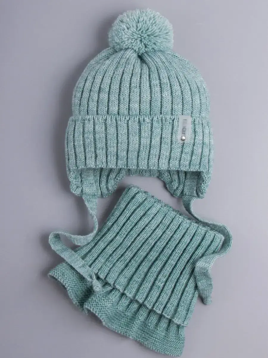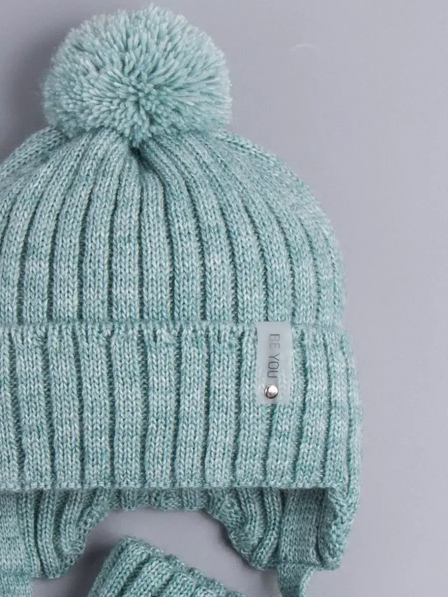 Детская вязаная шапочка на завязках с помпоном — идеальный выбор для малышей в прохладное время года!