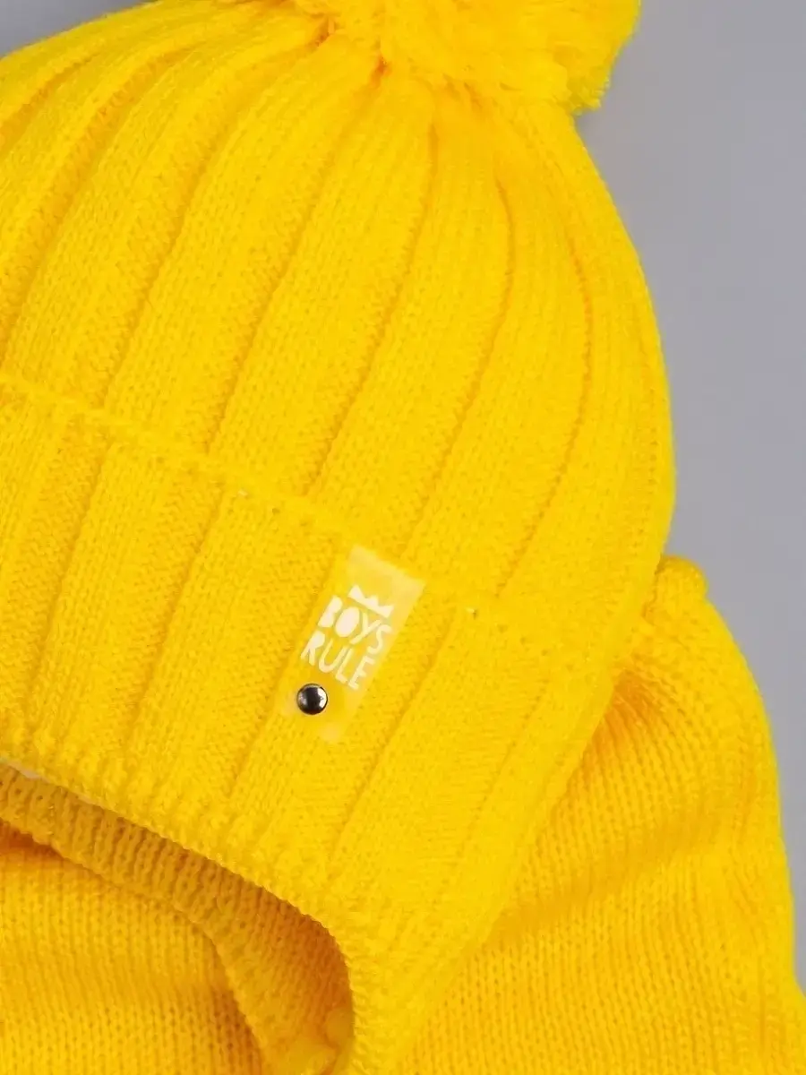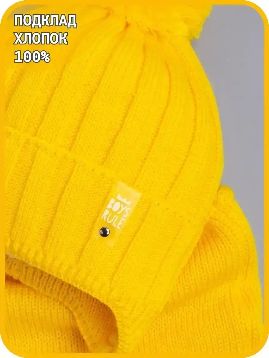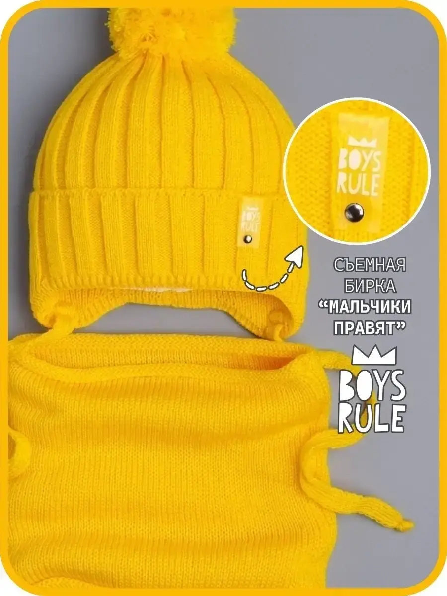 Шапка детская для мальчика и снуд- это отличный вариант холодной погоды на осень и на теплую зиму. Шапка демисезонная с завязками подойдет как для малышей с шести месяцев, так и для детей постарше. Вязаная шапочка дополнена подкладом из натурального хлопка, благодаря чему голова ребенка не будет потеть, а находиться в ней во время долгих прогулок будет комфортно. Широкий отворот теплой плотно прилегает к голове, закрывает уши и защищает от холода. Головной убор декорирован стильной биркой с надписью BOYS RULE. На время ухода за изделием ее можно легко отстегнуть. Снуд детский для мальчика - это удобная альтернатива шарфу или манишке, он хорошо тянется и защищает шею ребенка от холода. Благодаря качественной вязке он легко регулируется по ширине, а его длина подходит даже для самого объемного капюшона. Шапка для малышей выполнена в самых трендовых цветах этого сезона. Комплект отлично впишется в гардероб Вашего ребенка и прекрасно дополнят образ. Рекомендуемый температурный режим от +5 до -10 С. Набор изготовлен из пряжи высокого качества, которая не растянется и не потеряет форму даже после множества стирок. Он не скатывается, не магнитится, не продувает. Для того, чтобы изделие прослужило Вам как можно дольше, мы рекомендуем ручную или машинную бережную стирку при t не более 30 С.
