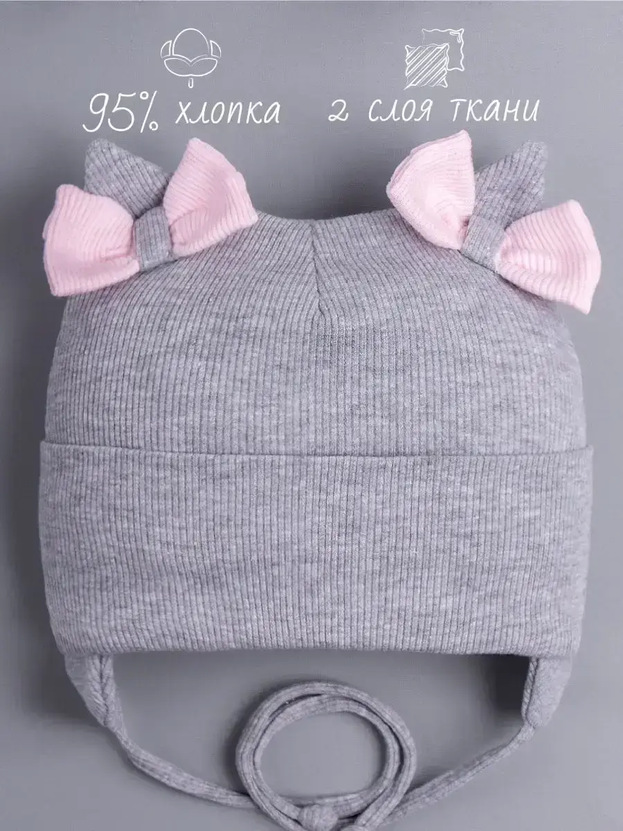 Шапка для девочки станет прекрасным решением для Вашего ребенка на осень и теплую зиму. Головной убор представлен в нескольких размерах и подойдет как для новорожденных, так и для деток постарше. Отличный вариант на выписку. Демисезонный чепчик для малыша декорирован ушками котика и двумя милыми бантиками, что непременно добавляет нежности и игривости маленькой моднице! Широкий плотный отворот защищает голову и шею от холода и ветра. Мягкие завязки легко завязываются в бант и не оставляют следов на коже. Трикотажная шапочка выполнена из нежнейшего трикотажа кашкорсе (в рубчик) Премиум качества, поэтому не будет доставлять дискомфорт во время носки. Все швы на ней практически не ощутимы. Шапка для девочки незаменима для осенних прогулок на свежем воздухе, похода в школу и детский сад. Благодаря большому количеству расцветок от ярких до нюдовых Вы легко соберете модный образ малышки! По уходу за изделием мы рекомендуем своим клиентам бережную машинную или ручную стирку при t не более 30С. В нашем магазине представлен широкий выбор головных уборов и аксессуаров на любой сезон! Приятных Вам покупок!