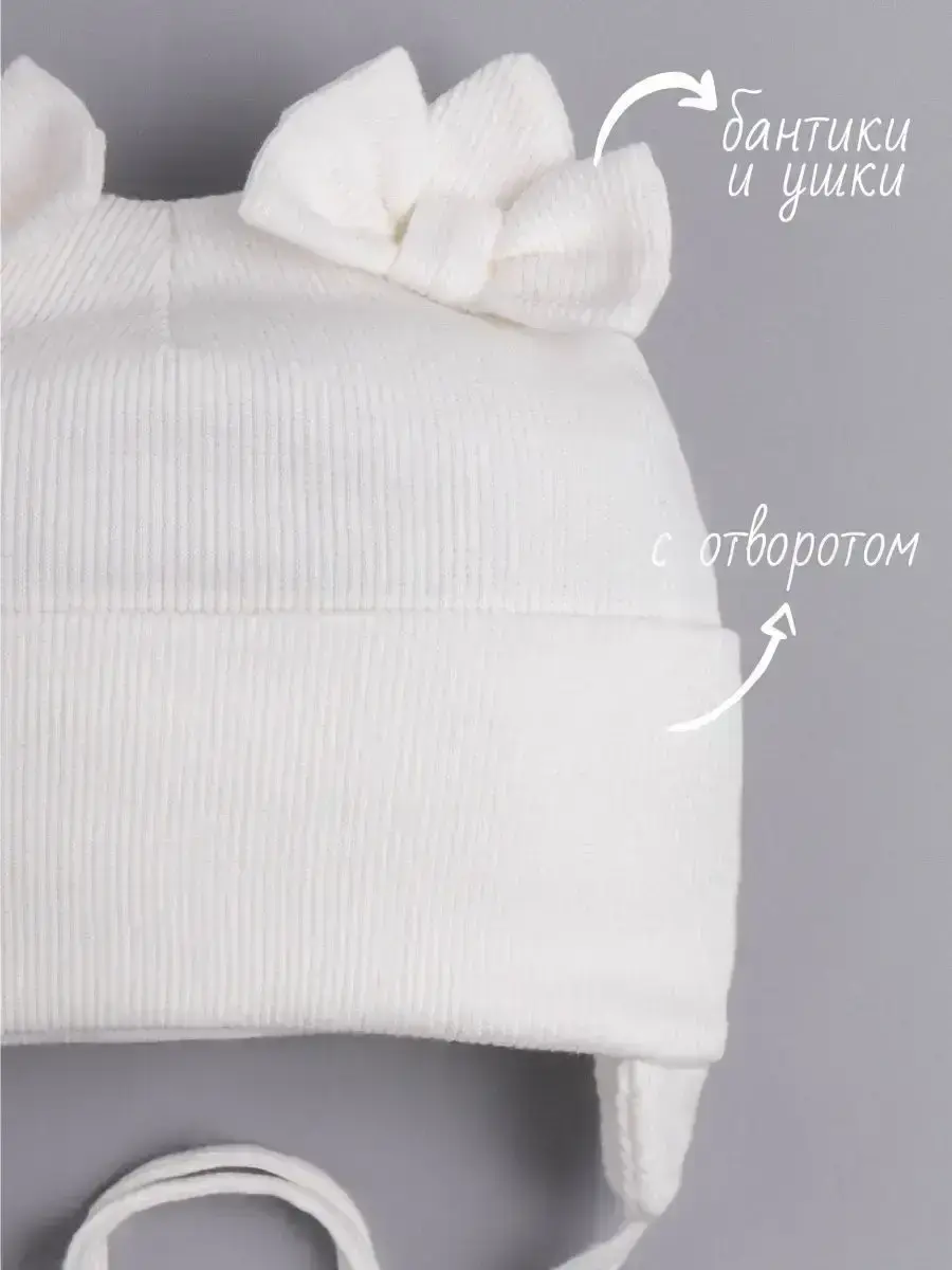 Шапка для девочки станет прекрасным решением для Вашего ребенка на осень и теплую зиму. Головной убор представлен в нескольких размерах и подойдет как для новорожденных, так и для деток постарше. Отличный вариант на выписку. Демисезонный чепчик для малыша декорирован ушками котика и двумя милыми бантиками, что непременно добавляет нежности и игривости маленькой моднице! Широкий плотный отворот защищает голову и шею от холода и ветра. Мягкие завязки легко завязываются в бант и не оставляют следов на коже. Трикотажная шапочка выполнена из нежнейшего трикотажа кашкорсе (в рубчик) Премиум качества, поэтому не будет доставлять дискомфорт во время носки. Все швы на ней практически не ощутимы. Шапка для девочки незаменима для осенних прогулок на свежем воздухе, похода в школу и детский сад. Благодаря большому количеству расцветок от ярких до нюдовых Вы легко соберете модный образ малышки! По уходу за изделием мы рекомендуем своим клиентам бережную машинную или ручную стирку при t не более 30С. В нашем магазине представлен широкий выбор головных уборов и аксессуаров на любой сезон! Приятных Вам покупок!