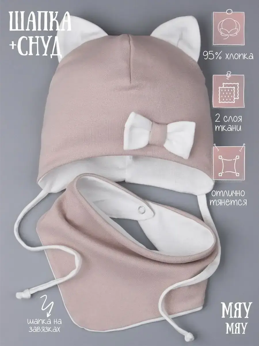 Шапкакошачьиушки,бантик+нагрудник00-0028091