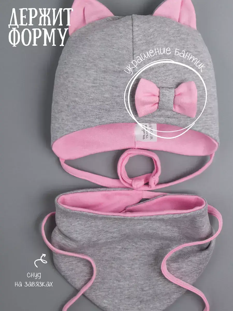 Шапкакошачьиушки,бантик+нагрудник00-0028529