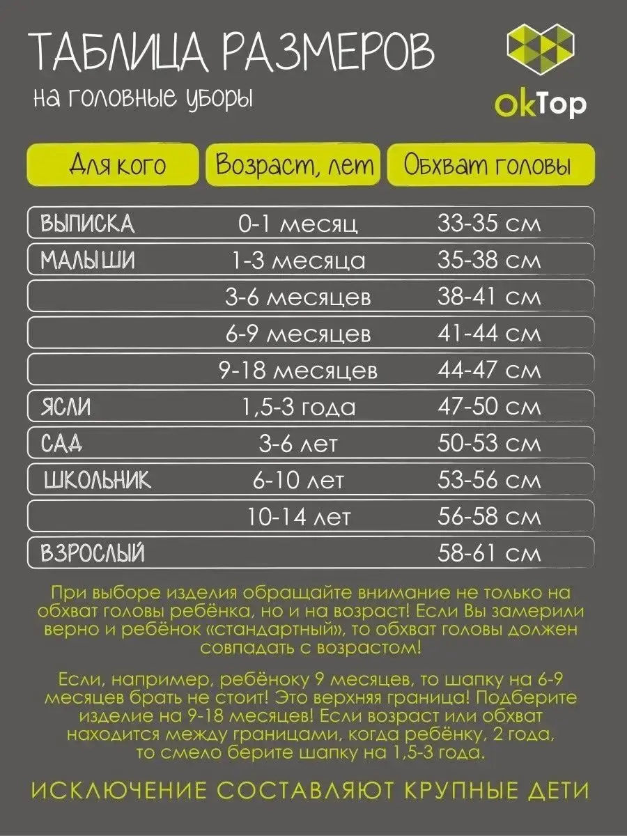 Шапка детская вязаная с отворотом - это отличный вариант на весну, на осень и теплую зиму. Головной убор с завязками представлен в нескольких размерах для детей от одного месяца до десяти лет. Подойдет на выписку для новорожденных. Модель представлена в самых трендовых цветах этого сезона, поэтому Вы с легкостью дополните ее гардероб Вашего ребенка. Изделие имеет подкладку из натурального хлопка, которая добавляет комфорта и не позволяет голове малыша вспотеть. Высококачественный состав пряжи (50% шерсти и 50% акрила) позволит изделию надолго сохранить свою первоначальную форму и цвет. Теплая демисезонная шапочка для девочки незаменима для прогулок и активного отдыха на свежем воздухе, а также станет чудесным подарком к любому празднику! К ней Вы также можете выбрать снуд и собрать модный комплект. Вы несомненно останетесь довольны высоким качеством наших изделий! Приятных Вам покупок!