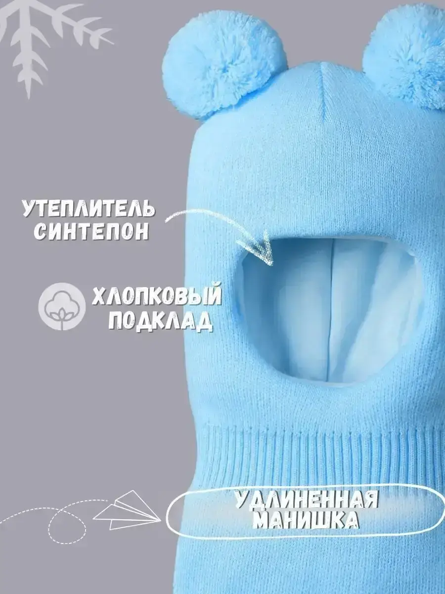 Шапка шлем детская красиво завершит образ Вашего ребенка, а также заменит детскую шапку и снуд! Балаклава с помпонами детская отлично подойдет для девочек и для мальчиков, так как представлена в самых актуальных цветах. Шапка детская шлем сочетается абсолютно с любым образом. Шапка детская изготовлена из пряжи Премиум качества (в составе гипоаллергенный акрил, акрил), поэтому в ней Вашему малышу будет очень комфортно. Благодаря анатомическому вырезу для лица и идеальному крою шапка-шлем плотно прилегает к голове, не пропускает ветер и сохраняет тепло. Шапка шлем демисезонная идеальна на зиму и холодную осень. Рекомендуемый температурный режим от -5 до -25. Шапка шлем для малышей-один из самых нужных аксессуаров в гардеробе! Удлиненная манишка у шапки детской шлема прекрасно заменяет снуд или шарф, благодаря чему шея ребенка всегда будет утеплена. Головной убор выполнен из натуральной гипоаллергенной ткани, поэтому не навредит чувствительной коже ребенка. Шапка детская зимняя замечательно впишется в любой гардероб малышей ввиду своей универсальности. Шапка детская демисезонная хорошо сочетается с комбинезоном, курткой, флисовым костюмчиком и другими аксессуарами в одежде. Балаклава детская под шлем будет удобна для длительных прогулок и игр на свежем воздухе. Перед покупкой шапки детской на зиму мы настоятельно рекомендуем ознакомиться с размерной таблицей, представленной в карточке товара. Просим учесть, что замеры окружности головы могут не совпадать с нашей классификацией по возрасту, так как все индивидуально. Для того, чтобы балаклава детская радовала Вас дольше используйте бережный режим стрики при t не более 30С и смягчающее средство. Мы уверены, что высокое качество не оставит Вас равнодушными! Сделано в России с любовью!
