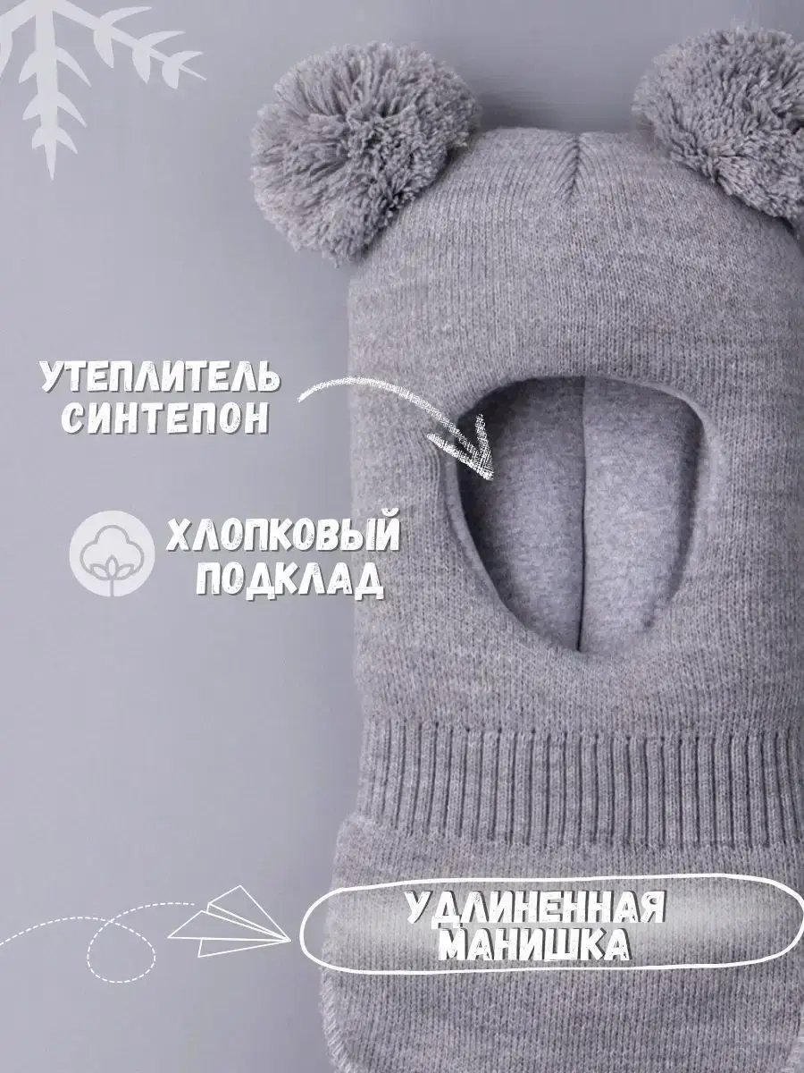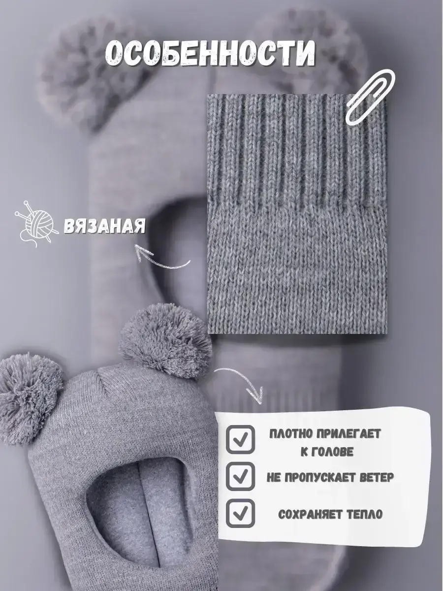 Шапка шлем детская красиво завершит образ Вашего ребенка, а также заменит детскую шапку и снуд! Балаклава с помпонами детская отлично подойдет для девочек и для мальчиков, так как представлена в самых актуальных цветах. Шапка детская шлем сочетается абсолютно с любым образом. Шапка детская изготовлена из пряжи Премиум качества (в составе гипоаллергенный акрил, акрил), поэтому в ней Вашему малышу будет очень комфортно. Благодаря анатомическому вырезу для лица и идеальному крою шапка-шлем плотно прилегает к голове, не пропускает ветер и сохраняет тепло. Шапка шлем демисезонная идеальна на зиму и холодную осень. Рекомендуемый температурный режим от -5 до -25. Шапка шлем для малышей-один из самых нужных аксессуаров в гардеробе! Удлиненная манишка у шапки детской шлема прекрасно заменяет снуд или шарф, благодаря чему шея ребенка всегда будет утеплена. Головной убор выполнен из натуральной гипоаллергенной ткани, поэтому не навредит чувствительной коже ребенка. Шапка детская зимняя замечательно впишется в любой гардероб малышей ввиду своей универсальности. Шапка детская демисезонная хорошо сочетается с комбинезоном, курткой, флисовым костюмчиком и другими аксессуарами в одежде. Балаклава детская под шлем будет удобна для длительных прогулок и игр на свежем воздухе. Перед покупкой шапки детской на зиму мы настоятельно рекомендуем ознакомиться с размерной таблицей, представленной в карточке товара. Просим учесть, что замеры окружности головы могут не совпадать с нашей классификацией по возрасту, так как все индивидуально. Для того, чтобы балаклава детская радовала Вас дольше используйте бережный режим стрики при t не более 30С и смягчающее средство. Мы уверены, что высокое качество не оставит Вас равнодушными! Сделано в России с любовью!