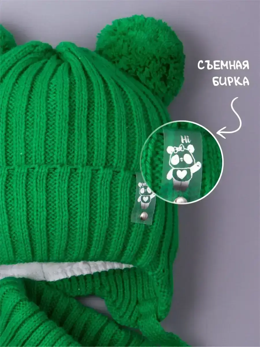 Шапка детская для девочки и снуд - это самый подходящий вариант на осень и на теплую зиму. Комплект демисезонный детский представлен в нескольких размерах для детей от шести месяцев до 10 лет. Шапочка осенняя для девочки дополнена подкладкой из натурального хлопка, поэтому Вашему ребенку будет в ней очень тепло и комфортно в любую погоду, а голова не будет потеть. Она хорошо защищает уши малыша от холода и ветра, благодаря широкому отвороту. Мягкие завязки прекрасно фиксируют ее на голове, не передавливая и не оставляя следов на чувствительной коже. Модель с ушками декорирована двумя помпонами и съемной прозрачной биркой с изображением панды. Изделие представлено в самых модных цветах этого сезона, поэтому его легко комбинировать с любым гардеробом маленькой модницы. Головной убор изготовлен из пряжи высокого качества (акрил), он не растянется и не потеряет форму даже после длительного использования. Наша демисезонная шапка со снудом для девочки - идеальное решение для школы, детского сада и прогулок на свежем воздухе. Набор для детей рассчитан на температурный режим от 0 до -5 С.