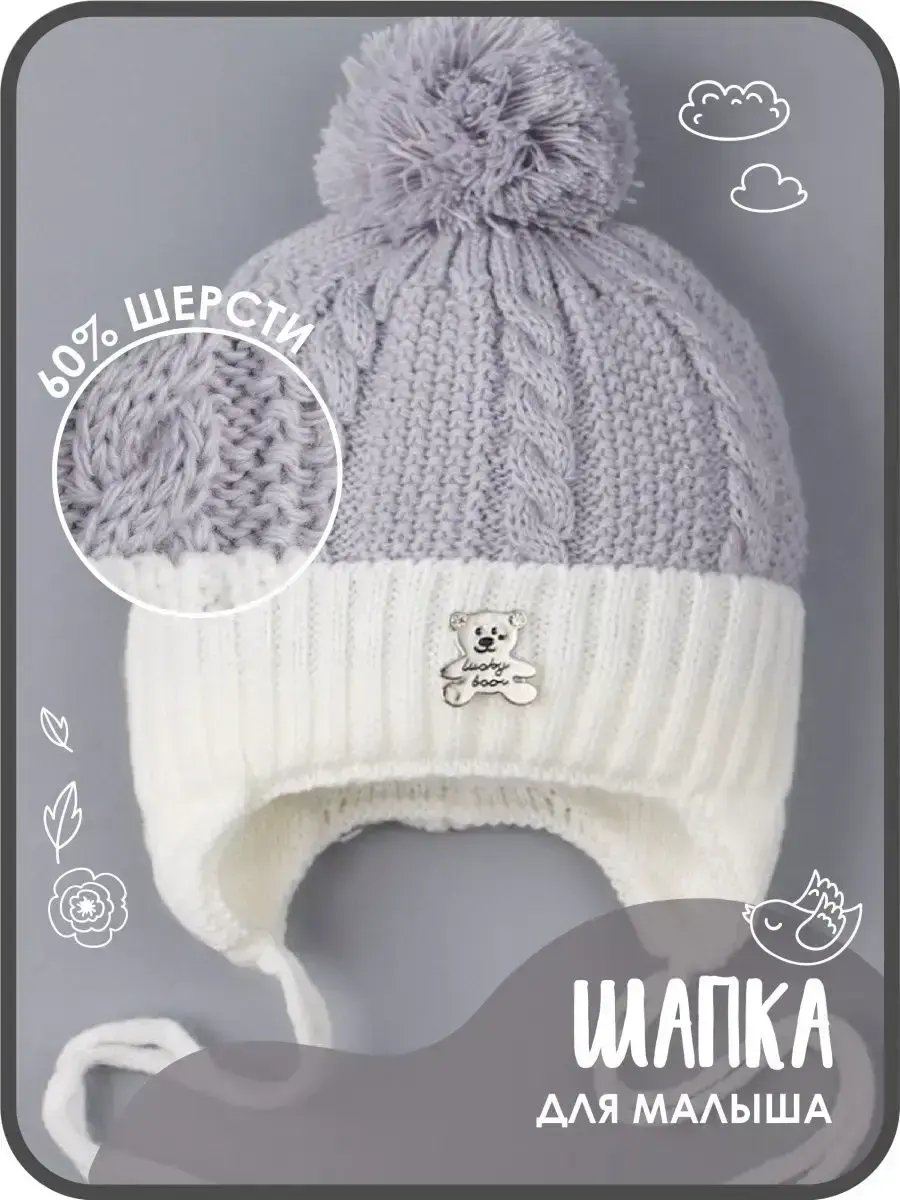 Шапка вязаная демисезонная прекрасно подойдет для малышей с первых дней жизни и до полутора лет. Головной убор рассчитан на период межсезонья (осень, весну, теплую зиму). Отличный вариант на выписку для мальчиков и девочек в холодное время года. Модель выполнена вязкой коса из высококачественной пряжи (в составе шерсть, акрил) и дополнена хлопковой подкладкой, благодаря которой находиться в шапочке длительное время будет комфортно малышу. Разнообразие цветов поможет создать красивый образ! Шапочка хорошо сидит, надежно фиксируется мягкими завязками и не съезжает во время активных движений на прогулке. Декорирован головной убор металлической брошкой в виде мишки, что добавляет индивидуальности образу малыша. Для удобства подбора размера мы прикрепили таблицу измерений с подробными рекомендациями. По уходу за изделием мы рекомендуем деликатную стирку (при t не более 30С), бережный отжим и сушку на горизонтальной поверхности. Шапочка для детей от бренда РусБубон непременно должна быть в гардеробе Вашего ребенка! Сделано в России.