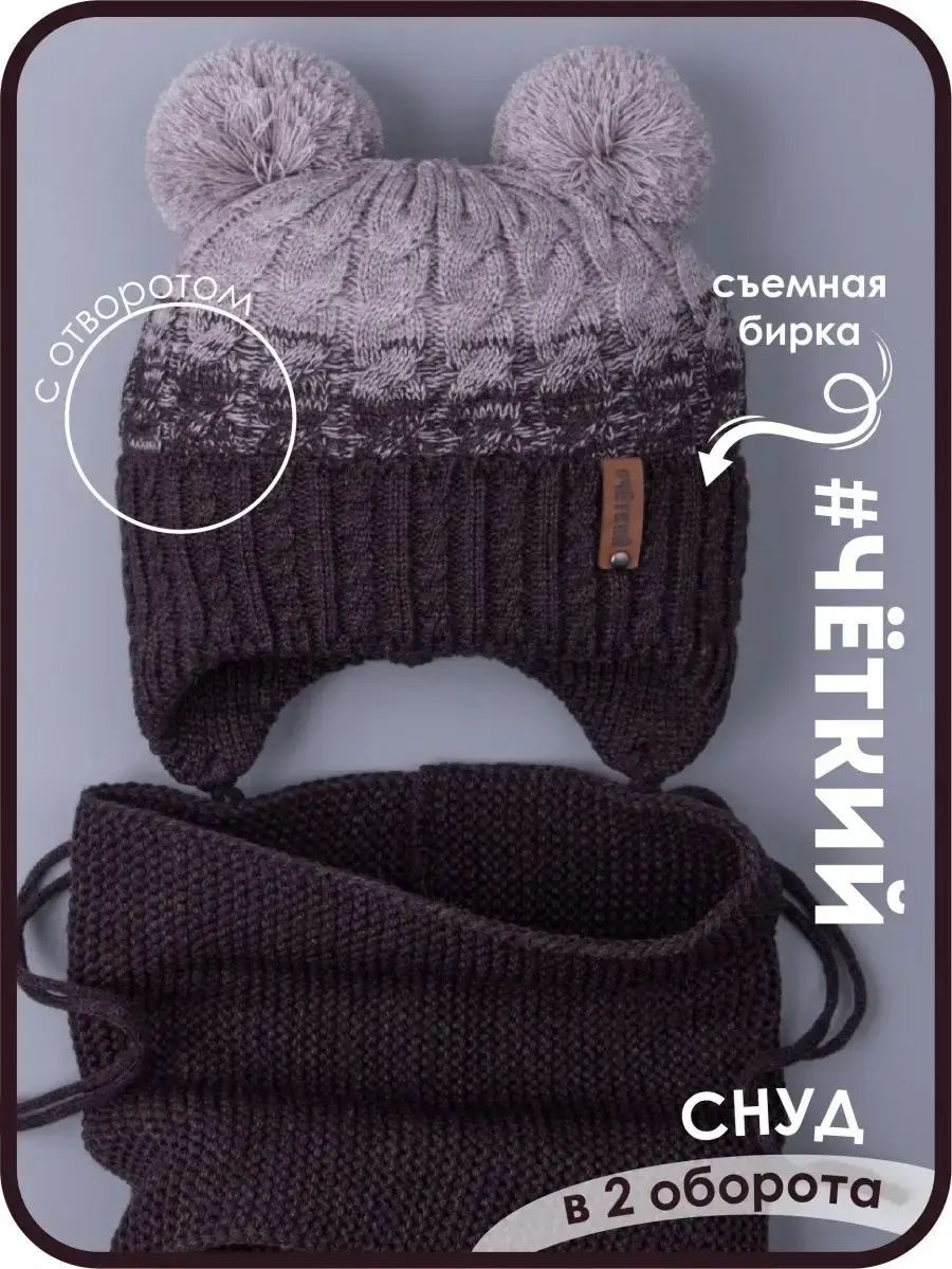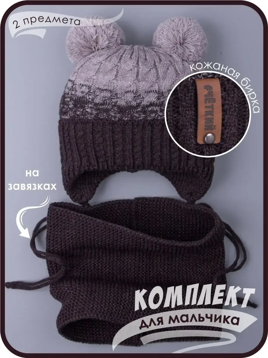 Шапка детская для мальчика с двумя помпонами - это самый подходящий вариант для переменчивой погоды на осень и на теплую зиму. Модель представлена в нескольких размерах и подойдет как для малышей, так и для подростков. Головной убор имеет хлопковую подкладку, благодаря чему голова ребенка не будет потеть при смене температур, а значит снижается риск простудиться. Широкий плотный отворот закрывает уши, лоб и шею, защищает от холода. Комплект рассчитан на температурный режим от -5 до -10 С. В качестве декора имеется кожаная съемная бирка с надписью "ЧЕТКИЙ", которая при необходимости легко отстегивается. Большое количество расцветок позволит подобрать демисезонный набор к любому гардеробу. Вязаный снуд прекрасно заменяет шарф или манишку, хорошо растягивается и его можно надевать как под верхнюю одежду, так и на нее (под капюшон). Шапочка и шарфик выполнены из высококачественной пряжи (акрил), поэтому надолго сохранят свой первоначальный внешний вид. Наш демисезонный комплект для мальчика просто незаменим для школы, детского садика и прогулок на свежем воздухе.