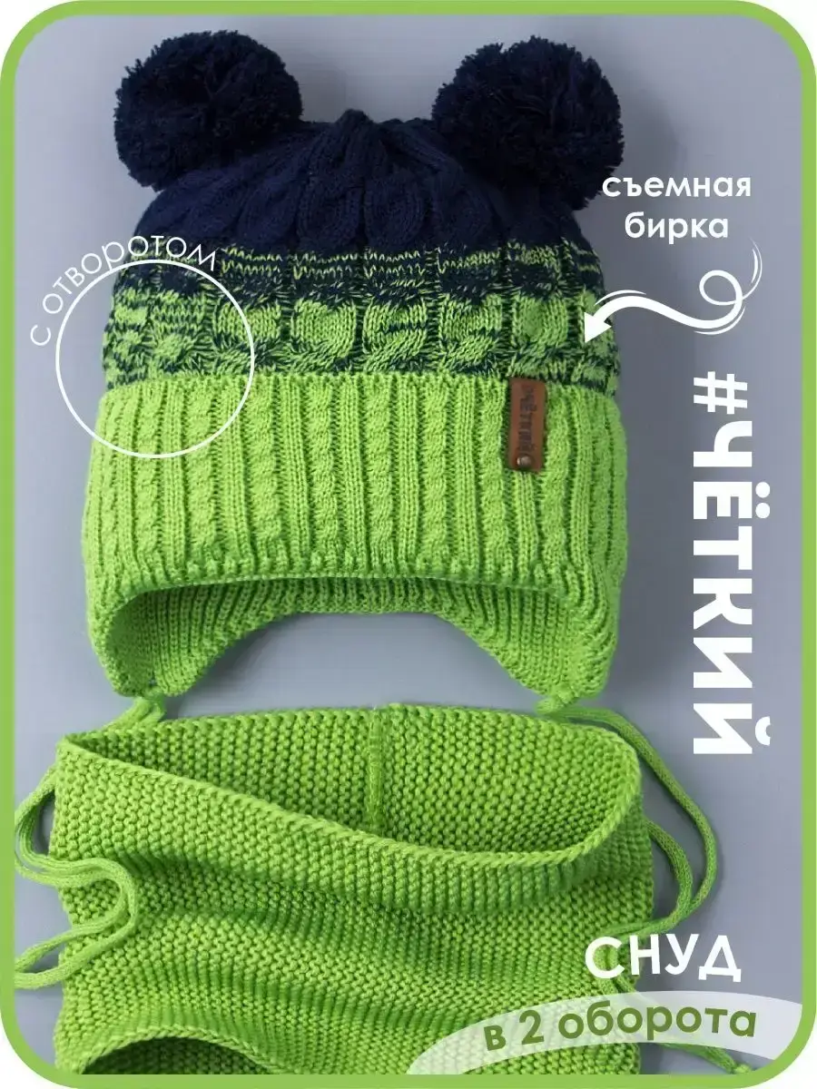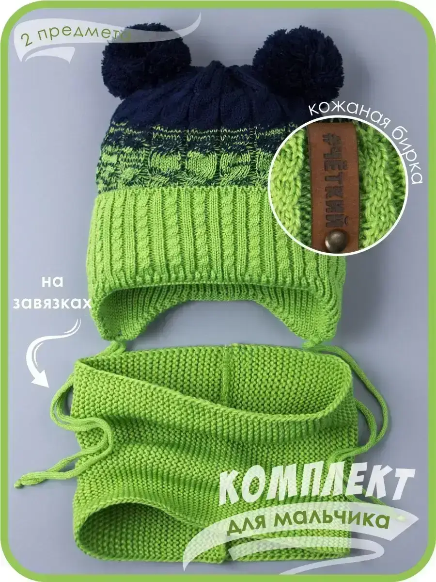 Шапка детская для мальчика с двумя помпонами - это самый подходящий вариант для переменчивой погоды на осень и на теплую зиму. Модель представлена в нескольких размерах и подойдет как для малышей, так и для подростков. Головной убор имеет хлопковую подкладку, благодаря чему голова ребенка не будет потеть при смене температур, а значит снижается риск простудиться. Широкий плотный отворот закрывает уши, лоб и шею, защищает от холода. Комплект рассчитан на температурный режим от -5 до -10 С. В качестве декора имеется кожаная съемная бирка с надписью "ЧЕТКИЙ", которая при необходимости легко отстегивается. Большое количество расцветок позволит подобрать демисезонный набор к любому гардеробу. Вязаный снуд прекрасно заменяет шарф или манишку, хорошо растягивается и его можно надевать как под верхнюю одежду, так и на нее (под капюшон). Шапочка и шарфик выполнены из высококачественной пряжи (акрил), поэтому надолго сохранят свой первоначальный внешний вид. Наш демисезонный комплект для мальчика просто незаменим для школы, детского садика и прогулок на свежем воздухе.