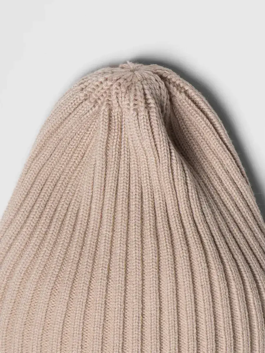 WB-005/00-0035393/Шапка-бини женская, вязка лапша, бежевый