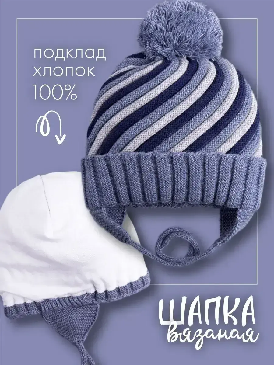Зимняя вязаная шапка на завязках — идеальный аксессуар для вашего малыша в холодное время года!