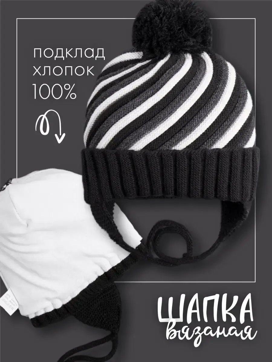 Зимняя вязаная шапка на завязках — идеальный аксессуар для вашего малыша в холодное время года!