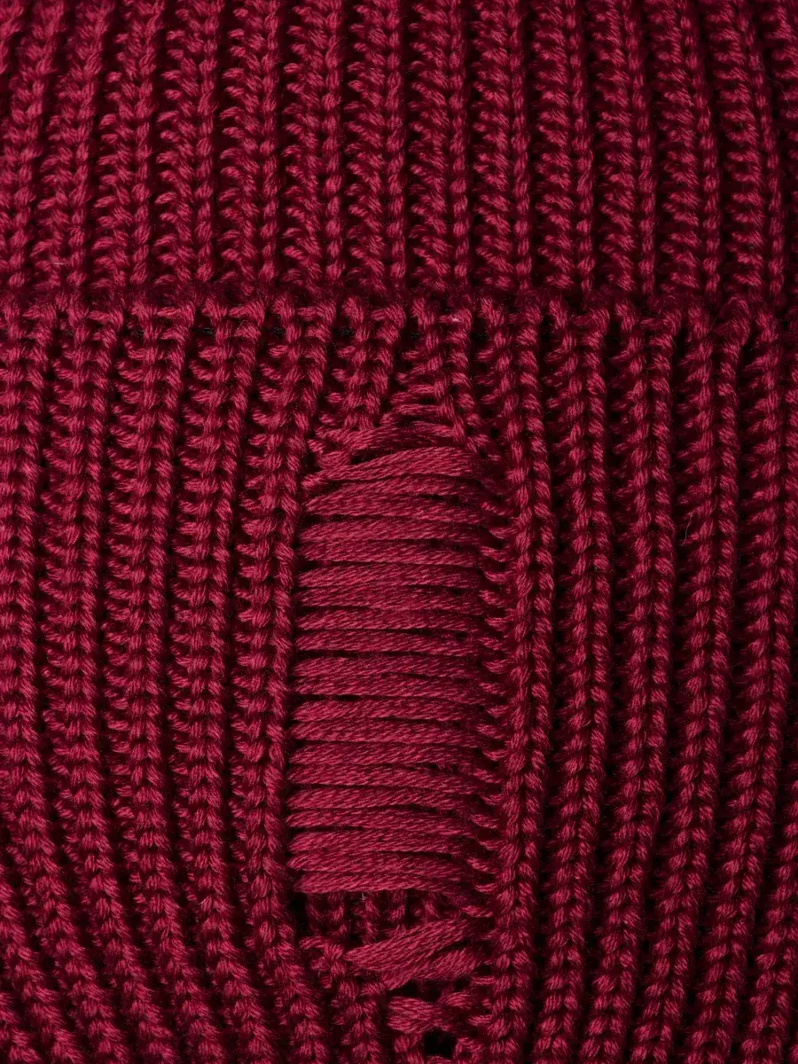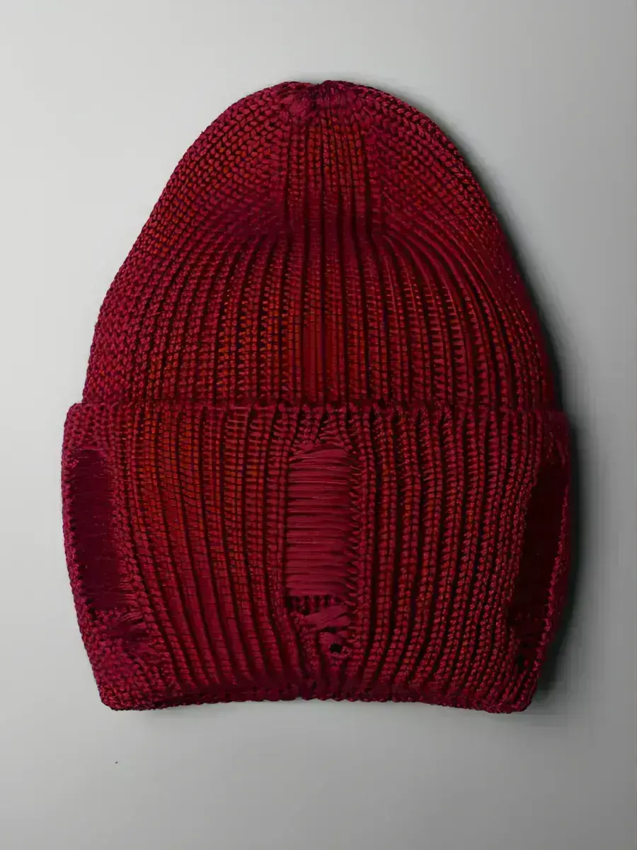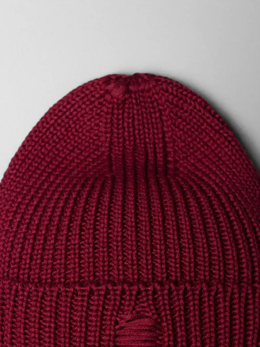 Рваный эффект придаёт шапке бини дерзкий, уличный характер, подчёркивая индивидуальность и чувство стиля. Она плотно сидит на голове, защищает от ветра и создаёт стильный силуэт. Отлично сочетается с пальто, куртками, худи и джинсами.