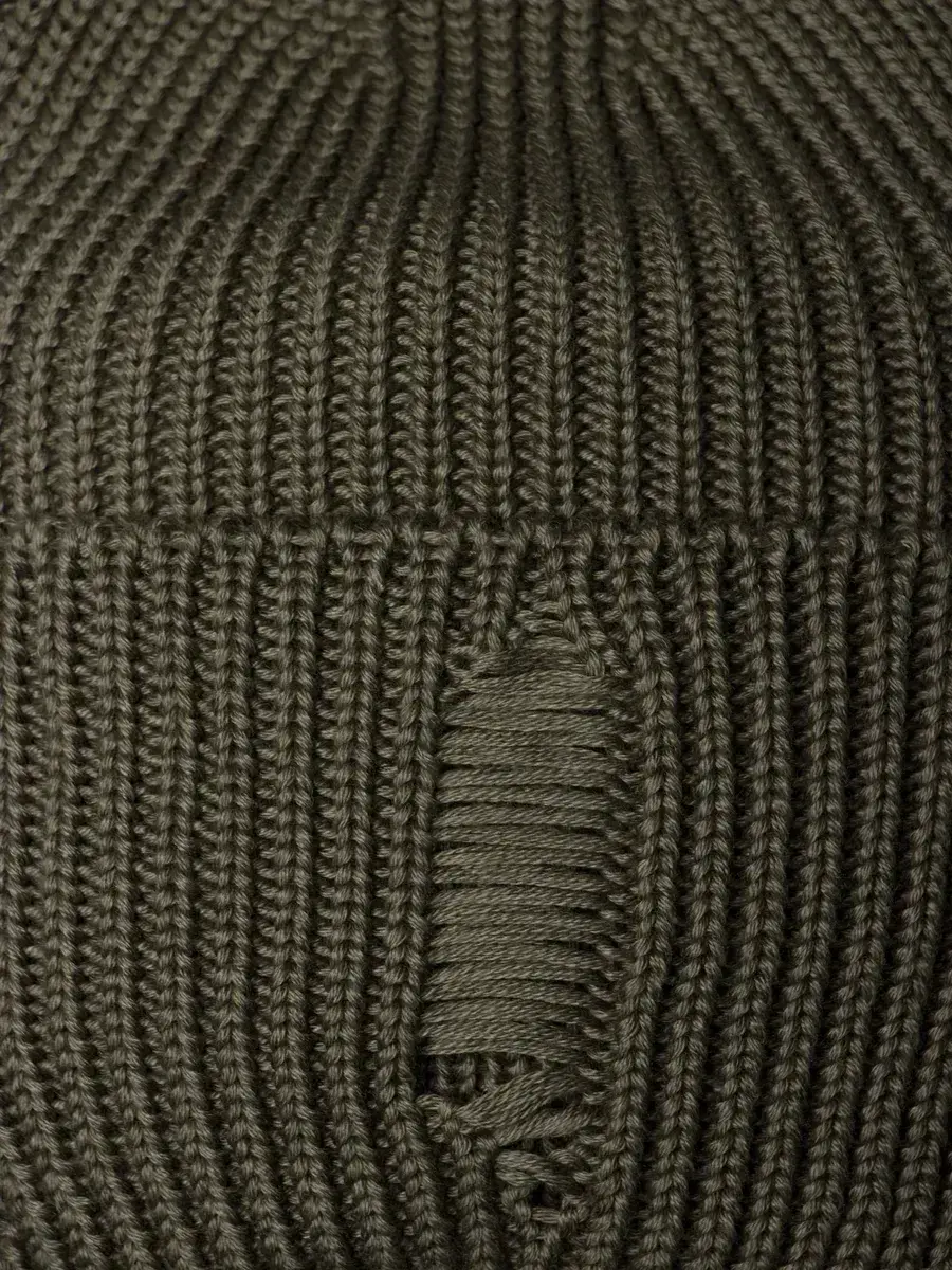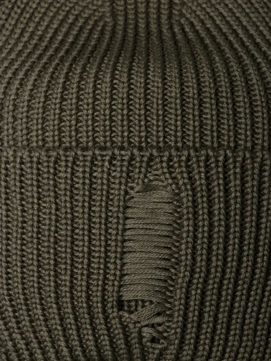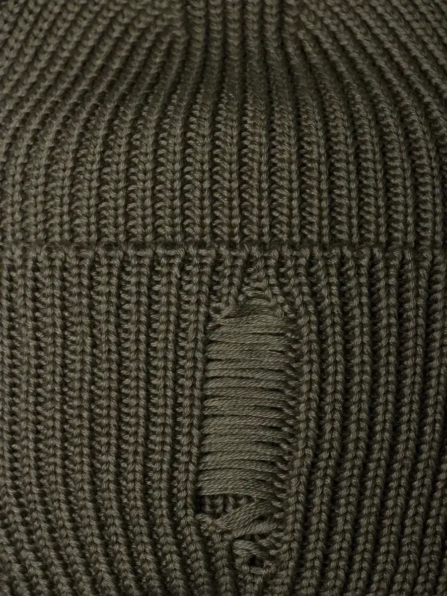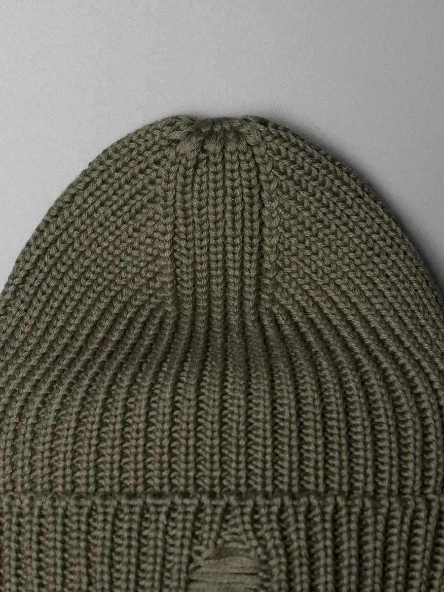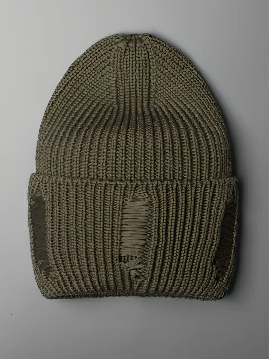 Рваный эффект придаёт шапке бини дерзкий, уличный характер, подчёркивая индивидуальность и чувство стиля. Она плотно сидит на голове, защищает от ветра и создаёт стильный силуэт. Отлично сочетается с пальто, куртками, худи и джинсами.