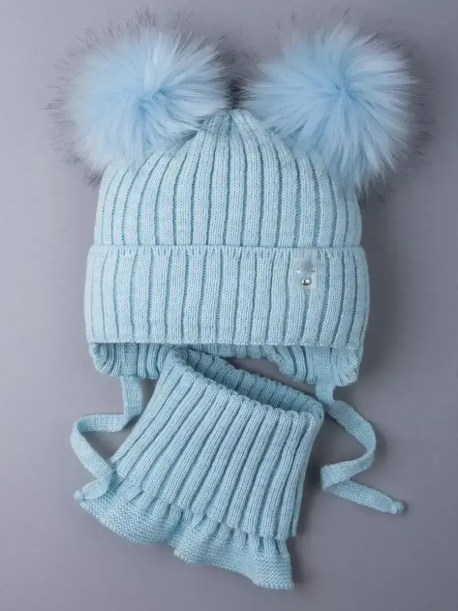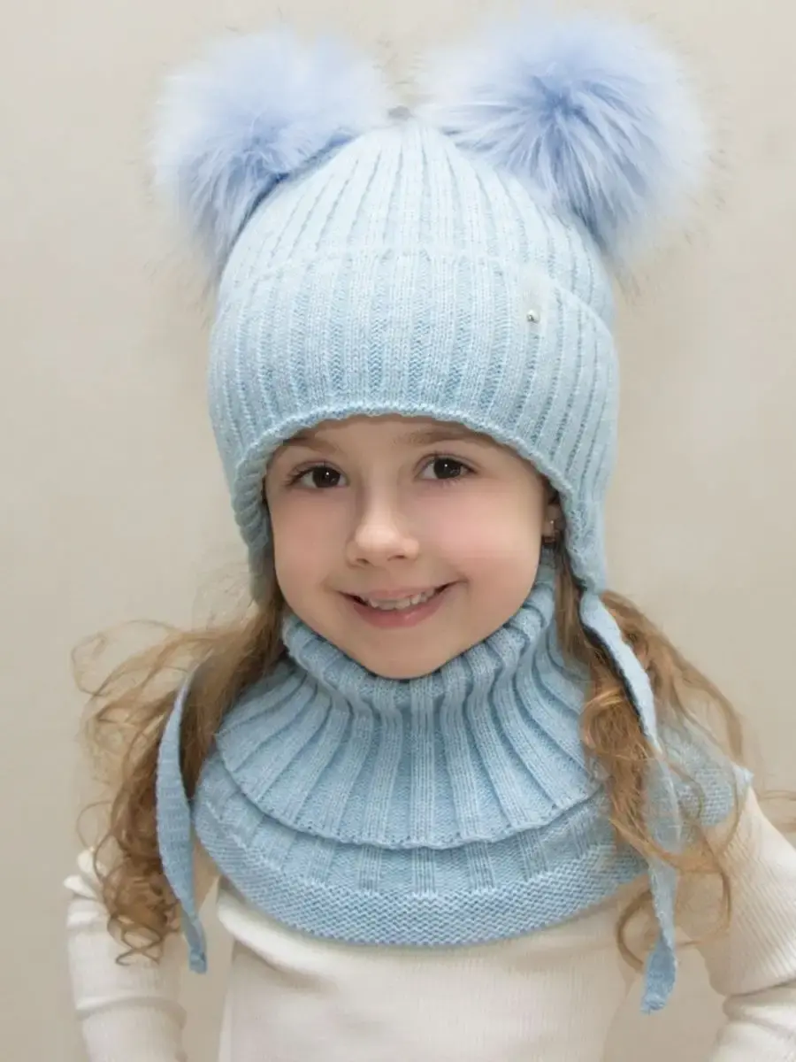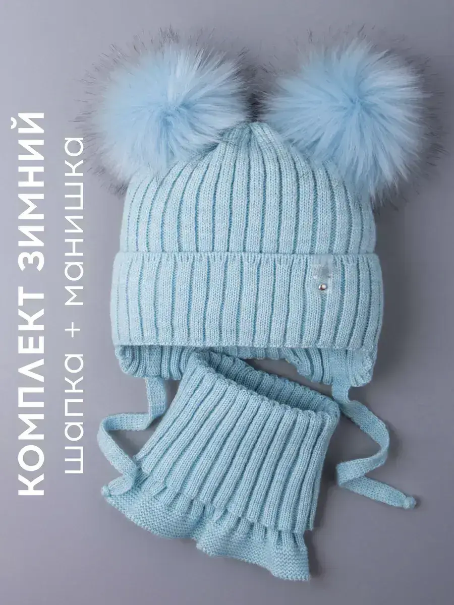 Шапка детская для девочки и снуд-манишка-это лучшее решение на зиму и холодную осень! Вязаная шапочка осенняя на завязках утеплена синтепоном и имеет хлопковый подклад, благодаря чему голова малышки не будет потеть, а находиться в ней во время долгих прогулок будет удобно. Манишка детская для детей прекрасно тянется, ее легко надевать и снимать, а мягкое полотно не колется и не натирает шею. Гипоаллергенный материал набора подойдет для малышей с чувствительной кожей, идеален для школы и детского садика. Стильный образ головному убору придает съемная бирка, которая легко отстегивается на время ухода за изделием. Благодаря качественному составу пряжи детский вязаный комплект будет радовать Вас не один сезон! Разнообразие цветовых решений поможет подобрать зимнюю детскую шапку и снуд под любой гардероб юной принцессы. Мы рекомендуем бережную ручную или машинную стирку при температуре не выше 30 °C. Сделано в России с любовью для вас!