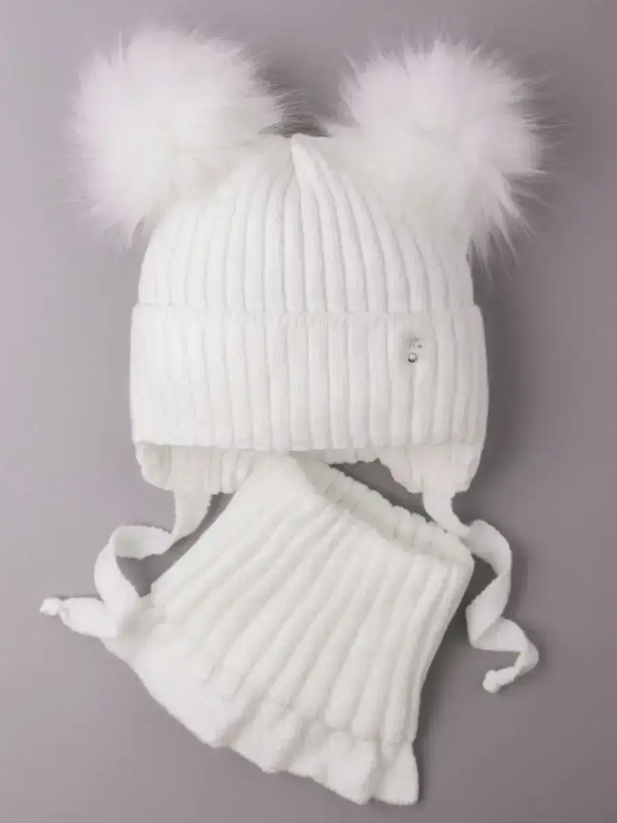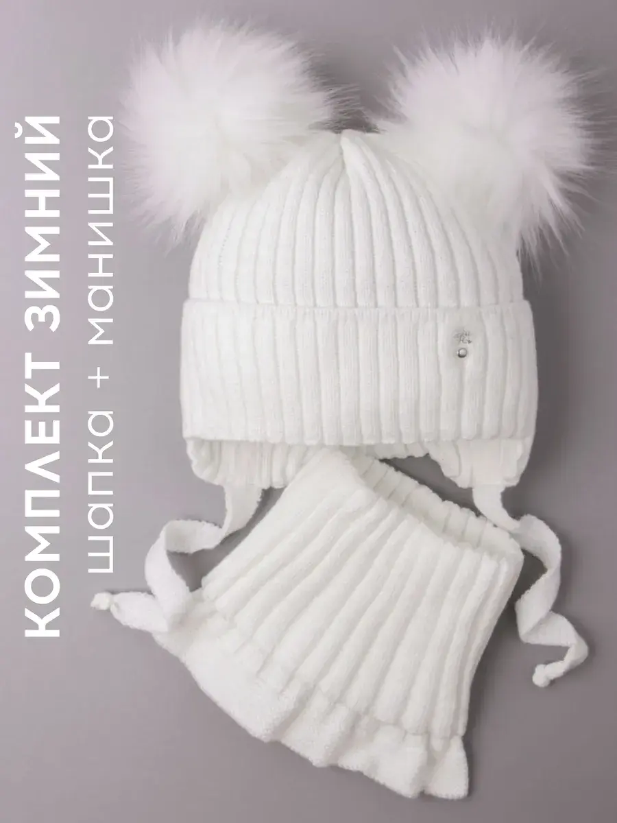 Шапка детская для девочки и снуд-манишка-это лучшее решение на зиму и холодную осень! Вязаная шапочка осенняя на завязках утеплена синтепоном и имеет хлопковый подклад, благодаря чему голова малышки не будет потеть, а находиться в ней во время долгих прогулок будет удобно. Манишка детская для детей прекрасно тянется, ее легко надевать и снимать, а мягкое полотно не колется и не натирает шею. Гипоаллергенный материал набора подойдет для малышей с чувствительной кожей, идеален для школы и детского садика. Стильный образ головному убору придает съемная бирка, которая легко отстегивается на время ухода за изделием. Благодаря качественному составу пряжи детский вязаный комплект будет радовать Вас не один сезон! Разнообразие цветовых решений поможет подобрать зимнюю детскую шапку и снуд под любой гардероб юной принцессы. Мы рекомендуем бережную ручную или машинную стирку при температуре не выше 30 °C. Сделано в России с любовью для вас!
