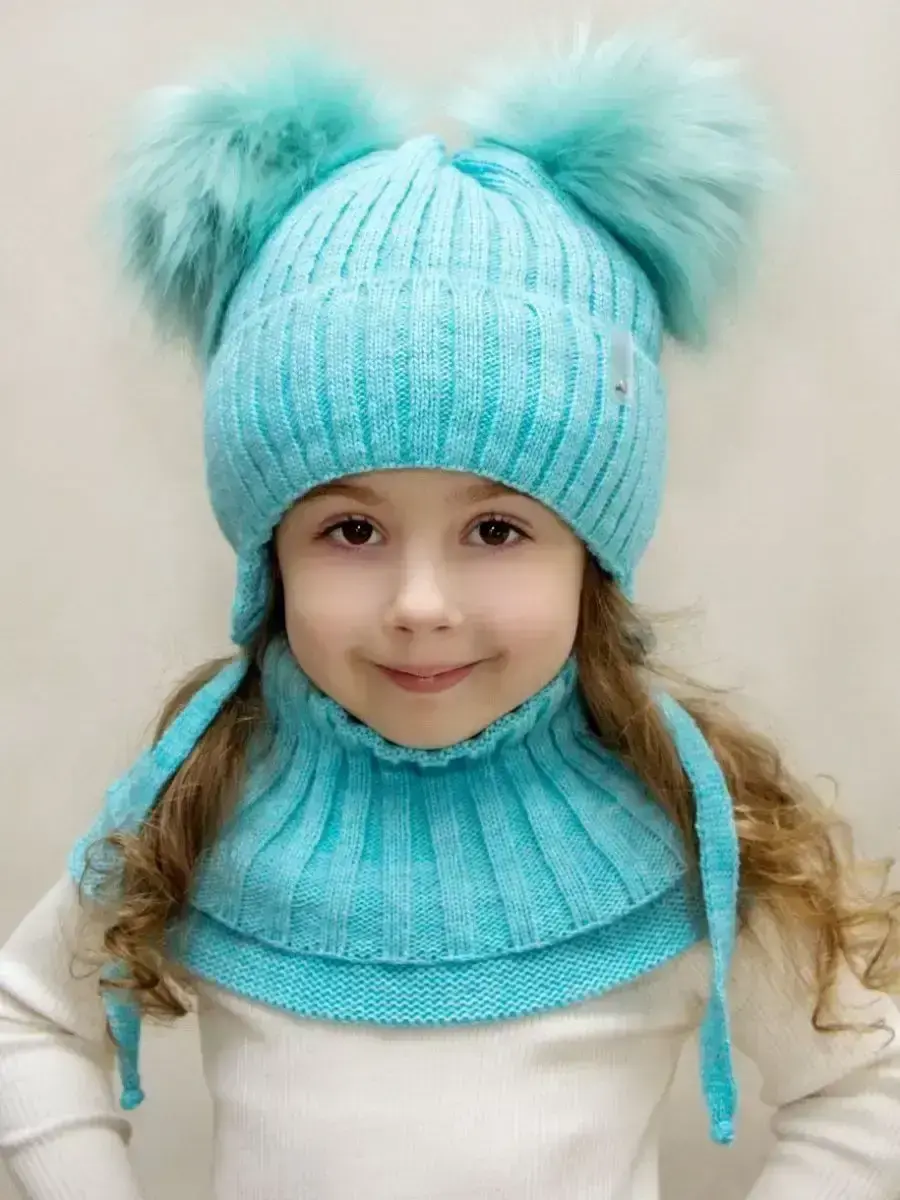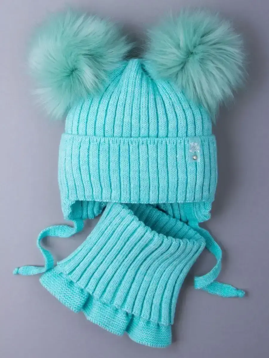 Шапка детская для девочки и снуд-манишка-это лучшее решение на зиму и холодную осень! Вязаная шапочка осенняя на завязках утеплена синтепоном и имеет хлопковый подклад, благодаря чему голова малышки не будет потеть, а находиться в ней во время долгих прогулок будет удобно. Манишка детская для детей прекрасно тянется, ее легко надевать и снимать, а мягкое полотно не колется и не натирает шею. Гипоаллергенный материал набора подойдет для малышей с чувствительной кожей, идеален для школы и детского садика. Стильный образ головному убору придает съемная бирка, которая легко отстегивается на время ухода за изделием. Благодаря качественному составу пряжи детский вязаный комплект будет радовать Вас не один сезон! Разнообразие цветовых решений поможет подобрать зимнюю детскую шапку и снуд под любой гардероб юной принцессы. Мы рекомендуем бережную ручную или машинную стирку при температуре не выше 30 °C. Сделано в России с любовью для вас!