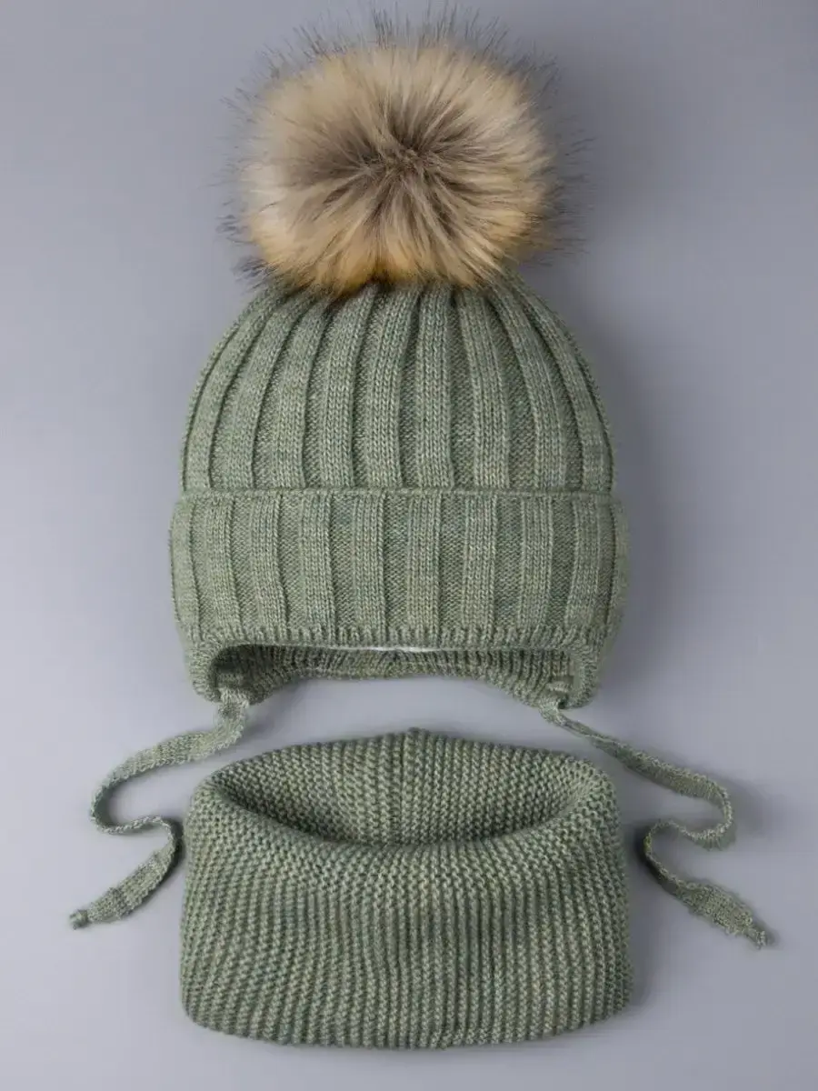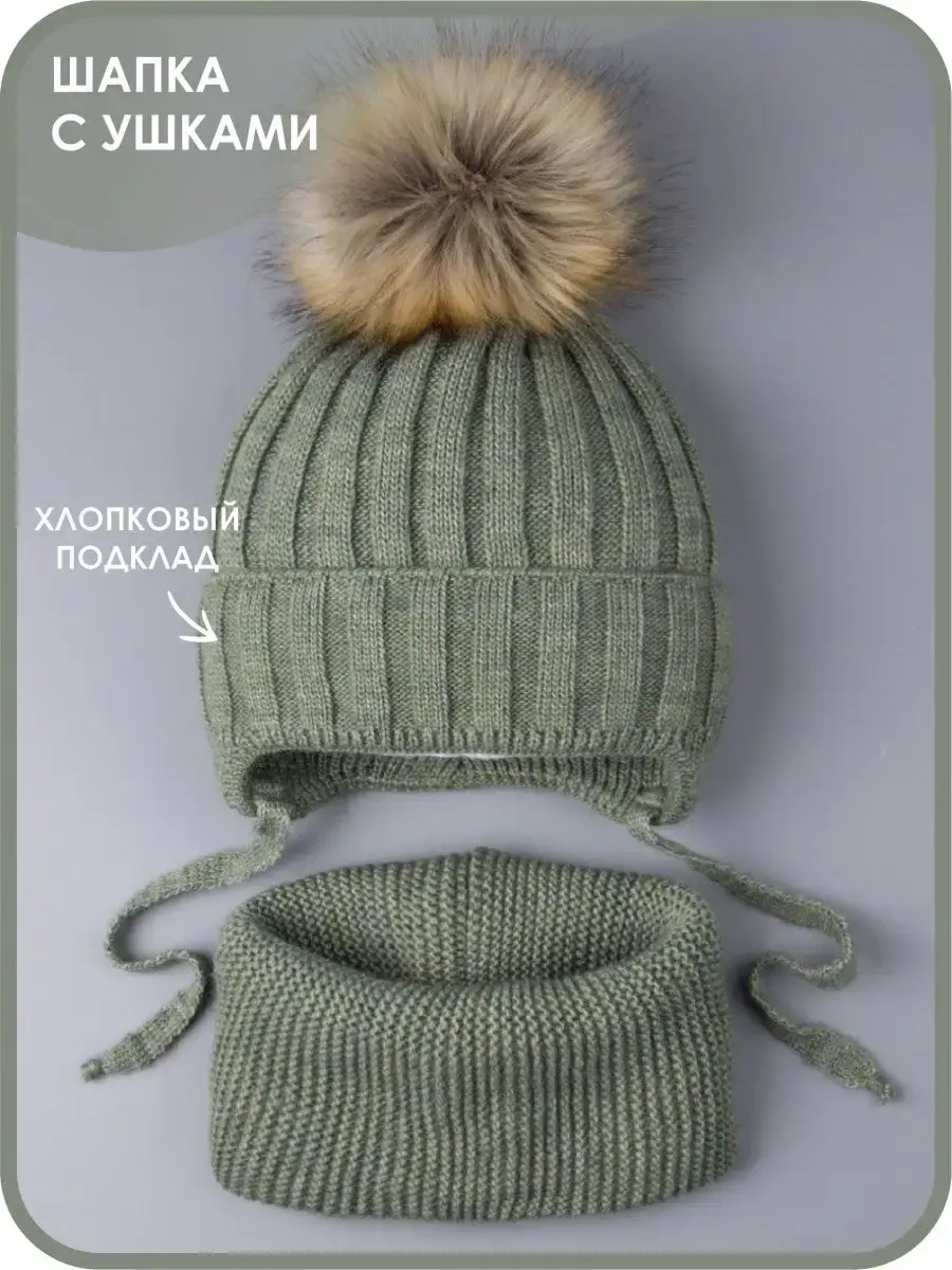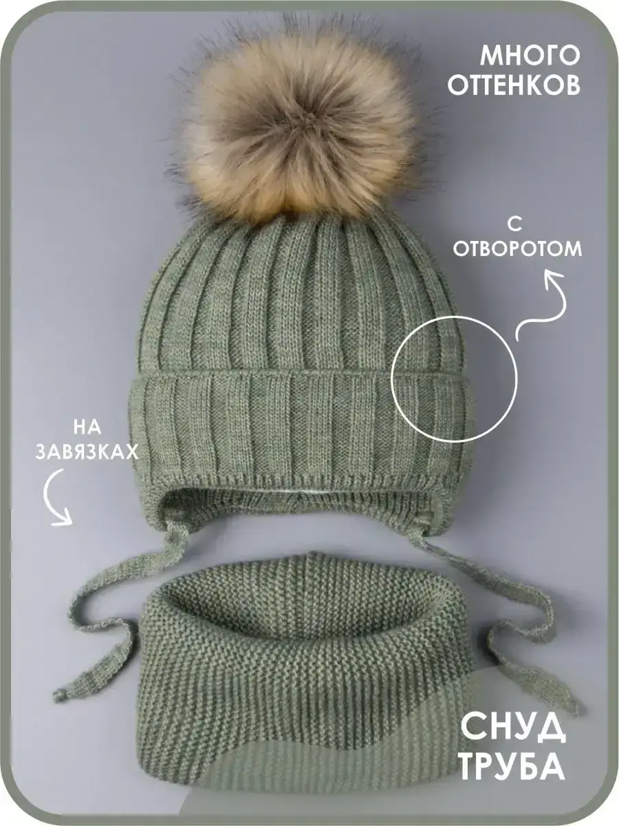 Шапка детская зимняя на завязках и снуд от бренда Ok Top - это лучший вариант на зиму и холодную осень! Благодаря большому количеству расцветок, модель подойдет для мальчиков и девочек. Вязаный комплект выполнен из качественной пряжи (в составе акрил), благодаря чему он хорошо сохраняет тепло и дарит комфорт. Теплая шапочка снабжена подкладкой из натурального хлопка, которая не дает голове вспотеть, а значит снижает риск простудиться. В качестве утеплителя используется синтепон и малышу не будет холодно даже в самый морозный день! Особый шарм придает пышный помпон из искусственного меха, который легко распушить, подержав над феном несколько секунд. Отворот на головном уборе плотно закрывает уши и шею ребенка в ветреную погоду. Мягкие завязки обеспечивают надежную фиксацию, предотвращая смещение во время движения. Классический стиль набора делает его универсальным и подходящим к любому гардеробу. Теплый снуд прекрасно растягивается и складывается вдвое, его можно надевать как под верхнюю одежду, так и под капюшон. Он не колется и не магнитится. Широкий размерный ряд позволит выбрать комплект для деток от шести месяцев до десяти лет. Идеален для прогулок, активного отдыха на свежем воздухе, школы и детского садика.