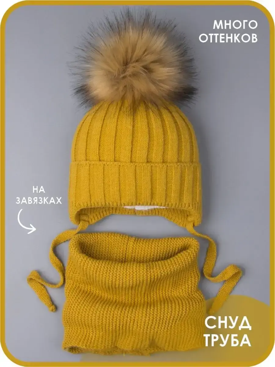 Шапка детская зимняя на завязках и снуд от бренда Ok Top - это лучший вариант на зиму и холодную осень! Благодаря большому количеству расцветок, модель подойдет для мальчиков и девочек. Вязаный комплект выполнен из качественной пряжи (в составе акрил), благодаря чему он хорошо сохраняет тепло и дарит комфорт. Теплая шапочка снабжена подкладкой из натурального хлопка, которая не дает голове вспотеть, а значит снижает риск простудиться. В качестве утеплителя используется синтепон и малышу не будет холодно даже в самый морозный день! Особый шарм придает пышный помпон из искусственного меха, который легко распушить, подержав над феном несколько секунд. Отворот на головном уборе плотно закрывает уши и шею ребенка в ветреную погоду. Мягкие завязки обеспечивают надежную фиксацию, предотвращая смещение во время движения. Классический стиль набора делает его универсальным и подходящим к любому гардеробу. Теплый снуд прекрасно растягивается и складывается вдвое, его можно надевать как под верхнюю одежду, так и под капюшон. Он не колется и не магнитится. Широкий размерный ряд позволит выбрать комплект для деток от шести месяцев до десяти лет. Идеален для прогулок, активного отдыха на свежем воздухе, школы и детского садика.