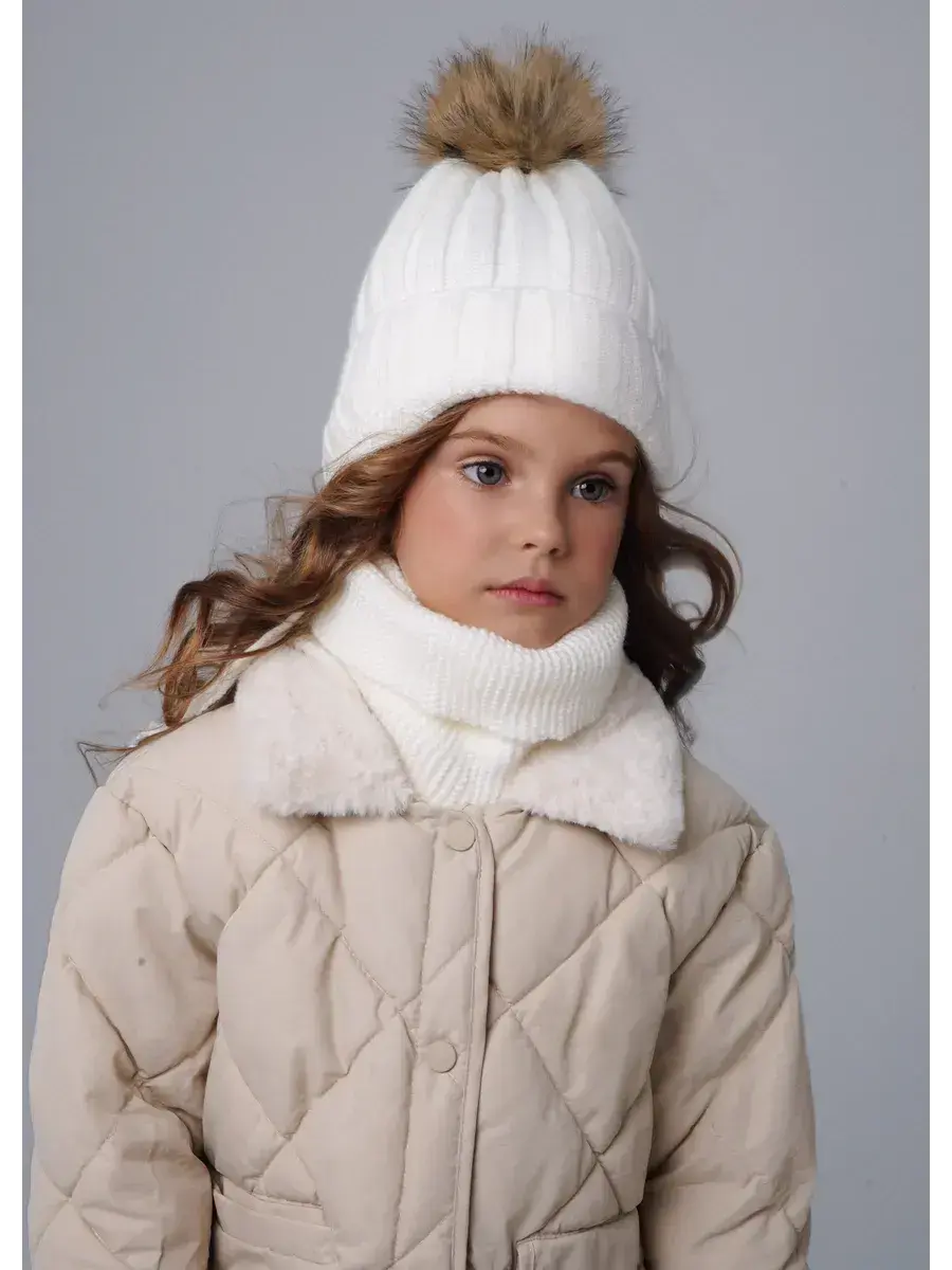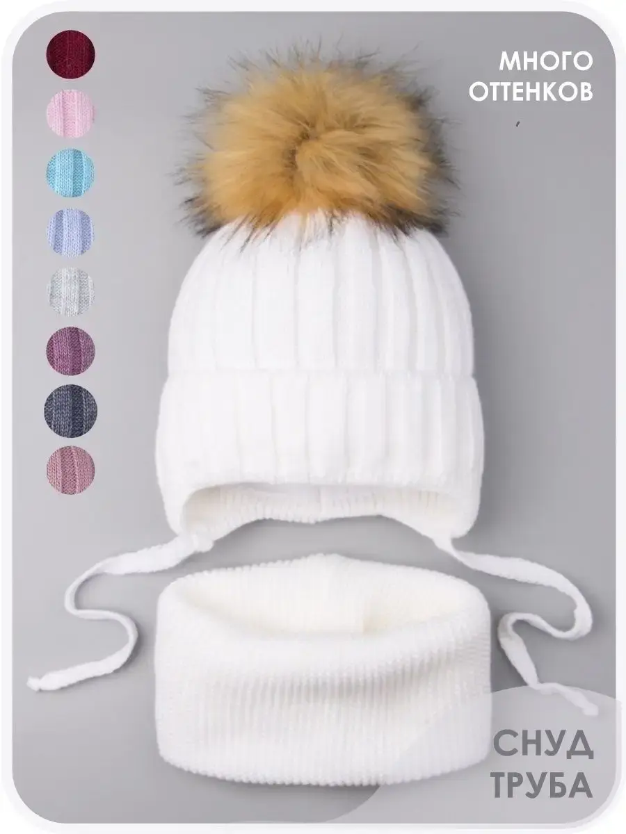 Шапка детская зимняя на завязках и снуд от бренда Ok Top - это лучший вариант на зиму и холодную осень! Благодаря большому количеству расцветок, модель подойдет для мальчиков и девочек. Вязаный комплект выполнен из качественной пряжи (в составе акрил), благодаря чему он хорошо сохраняет тепло и дарит комфорт. Теплая шапочка снабжена подкладкой из натурального хлопка, которая не дает голове вспотеть, а значит снижает риск простудиться. В качестве утеплителя используется синтепон и малышу не будет холодно даже в самый морозный день! Особый шарм придает пышный помпон из искусственного меха, который легко распушить, подержав над феном несколько секунд. Отворот на головном уборе плотно закрывает уши и шею ребенка в ветреную погоду. Мягкие завязки обеспечивают надежную фиксацию, предотвращая смещение во время движения. Классический стиль набора делает его универсальным и подходящим к любому гардеробу. Теплый снуд прекрасно растягивается и складывается вдвое, его можно надевать как под верхнюю одежду, так и под капюшон. Он не колется и не магнитится. Широкий размерный ряд позволит выбрать комплект для деток от шести месяцев до десяти лет. Идеален для прогулок, активного отдыха на свежем воздухе, школы и детского садика.