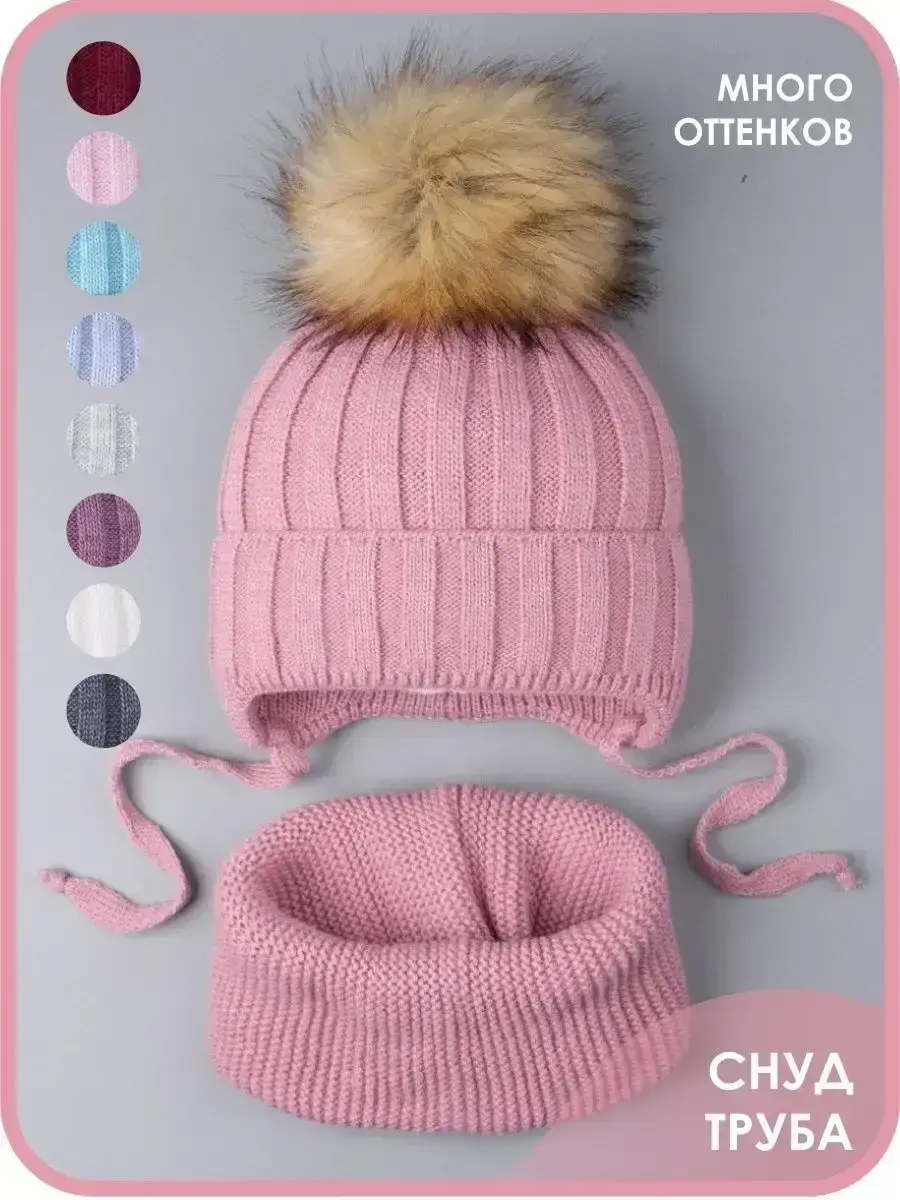 Шапка детская зимняя на завязках и снуд от бренда Ok Top - это лучший вариант на зиму и холодную осень! Благодаря большому количеству расцветок, модель подойдет для мальчиков и девочек. Вязаный комплект выполнен из качественной пряжи (в составе акрил), благодаря чему он хорошо сохраняет тепло и дарит комфорт. Теплая шапочка снабжена подкладкой из натурального хлопка, которая не дает голове вспотеть, а значит снижает риск простудиться. В качестве утеплителя используется синтепон и малышу не будет холодно даже в самый морозный день! Особый шарм придает пышный помпон из искусственного меха, который легко распушить, подержав над феном несколько секунд. Отворот на головном уборе плотно закрывает уши и шею ребенка в ветреную погоду. Мягкие завязки обеспечивают надежную фиксацию, предотвращая смещение во время движения. Классический стиль набора делает его универсальным и подходящим к любому гардеробу. Теплый снуд прекрасно растягивается и складывается вдвое, его можно надевать как под верхнюю одежду, так и под капюшон. Он не колется и не магнитится. Широкий размерный ряд позволит выбрать комплект для деток от шести месяцев до десяти лет. Идеален для прогулок, активного отдыха на свежем воздухе, школы и детского садика.