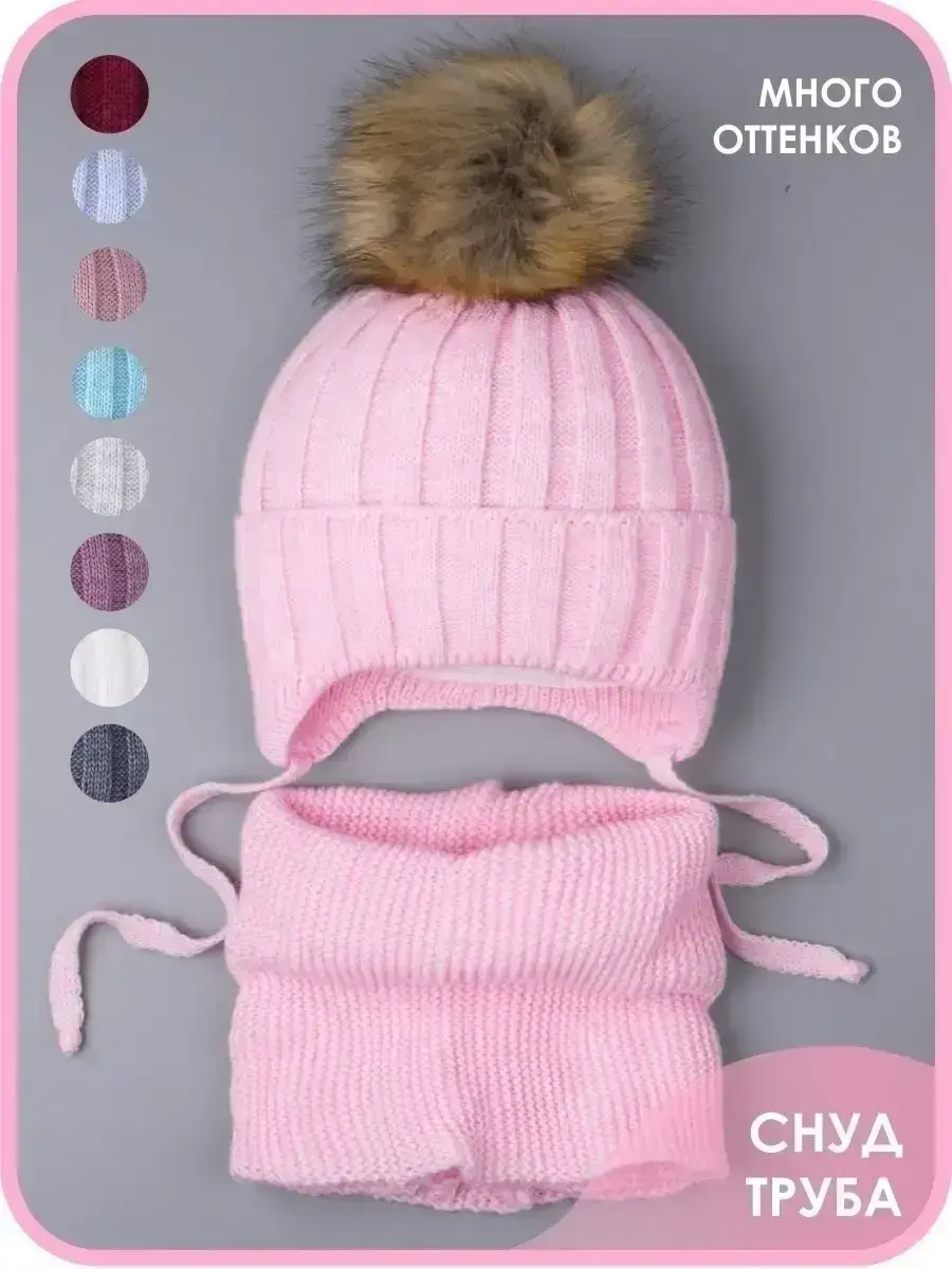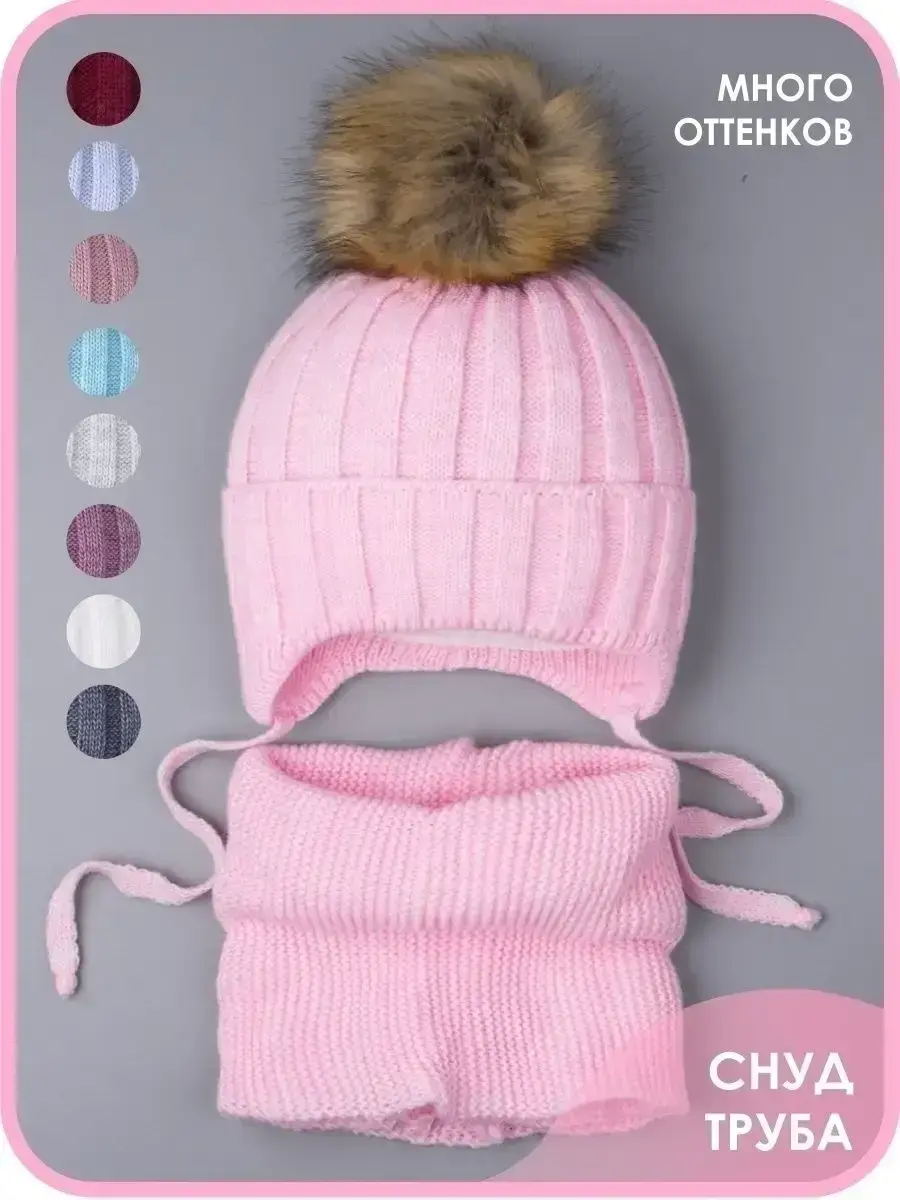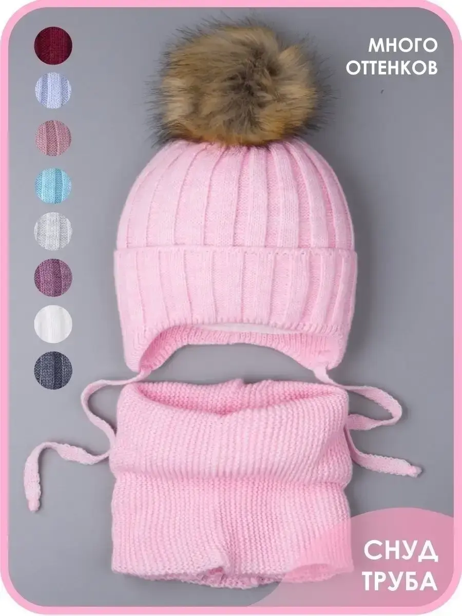 Шапка детская зимняя на завязках и снуд от бренда Ok Top - это лучший вариант на зиму и холодную осень! Благодаря большому количеству расцветок, модель подойдет для мальчиков и девочек. Вязаный комплект выполнен из качественной пряжи (в составе акрил), благодаря чему он хорошо сохраняет тепло и дарит комфорт. Теплая шапочка снабжена подкладкой из натурального хлопка, которая не дает голове вспотеть, а значит снижает риск простудиться. В качестве утеплителя используется синтепон и малышу не будет холодно даже в самый морозный день! Особый шарм придает пышный помпон из искусственного меха, который легко распушить, подержав над феном несколько секунд. Отворот на головном уборе плотно закрывает уши и шею ребенка в ветреную погоду. Мягкие завязки обеспечивают надежную фиксацию, предотвращая смещение во время движения. Классический стиль набора делает его универсальным и подходящим к любому гардеробу. Теплый снуд прекрасно растягивается и складывается вдвое, его можно надевать как под верхнюю одежду, так и под капюшон. Он не колется и не магнитится. Широкий размерный ряд позволит выбрать комплект для деток от шести месяцев до десяти лет. Идеален для прогулок, активного отдыха на свежем воздухе, школы и детского садика.