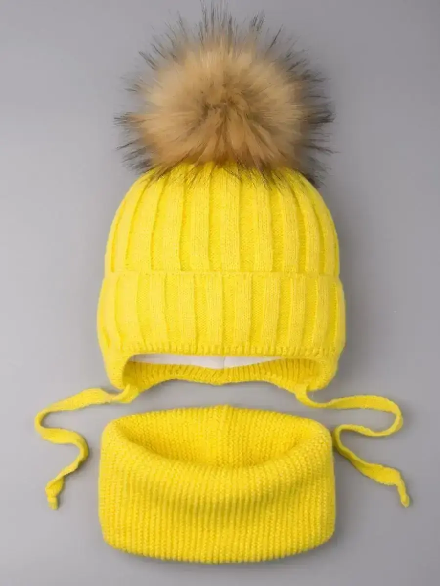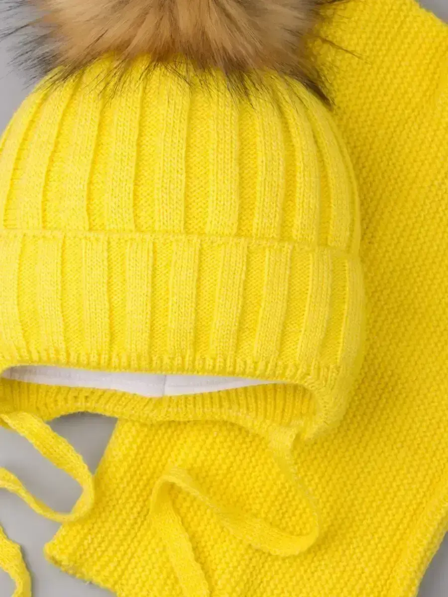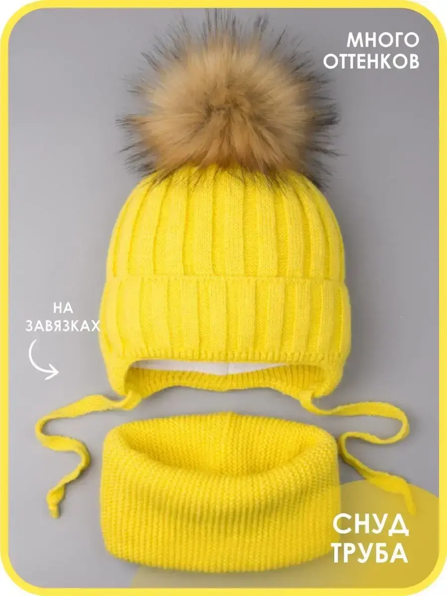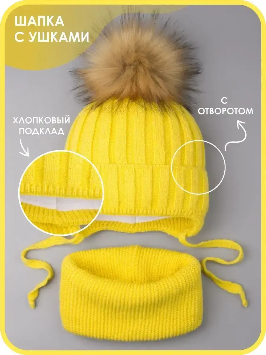 Шапка детская зимняя на завязках и снуд от бренда Ok Top - это лучший вариант на зиму и холодную осень! Благодаря большому количеству расцветок, модель подойдет для мальчиков и девочек. Вязаный комплект выполнен из качественной пряжи (в составе акрил), благодаря чему он хорошо сохраняет тепло и дарит комфорт. Теплая шапочка снабжена подкладкой из натурального хлопка, которая не дает голове вспотеть, а значит снижает риск простудиться. В качестве утеплителя используется синтепон и малышу не будет холодно даже в самый морозный день! Особый шарм придает пышный помпон из искусственного меха, который легко распушить, подержав над феном несколько секунд. Отворот на головном уборе плотно закрывает уши и шею ребенка в ветреную погоду. Мягкие завязки обеспечивают надежную фиксацию, предотвращая смещение во время движения. Классический стиль набора делает его универсальным и подходящим к любому гардеробу. Теплый снуд прекрасно растягивается и складывается вдвое, его можно надевать как под верхнюю одежду, так и под капюшон. Он не колется и не магнитится. Широкий размерный ряд позволит выбрать комплект для деток от шести месяцев до десяти лет. Идеален для прогулок, активного отдыха на свежем воздухе, школы и детского садика.