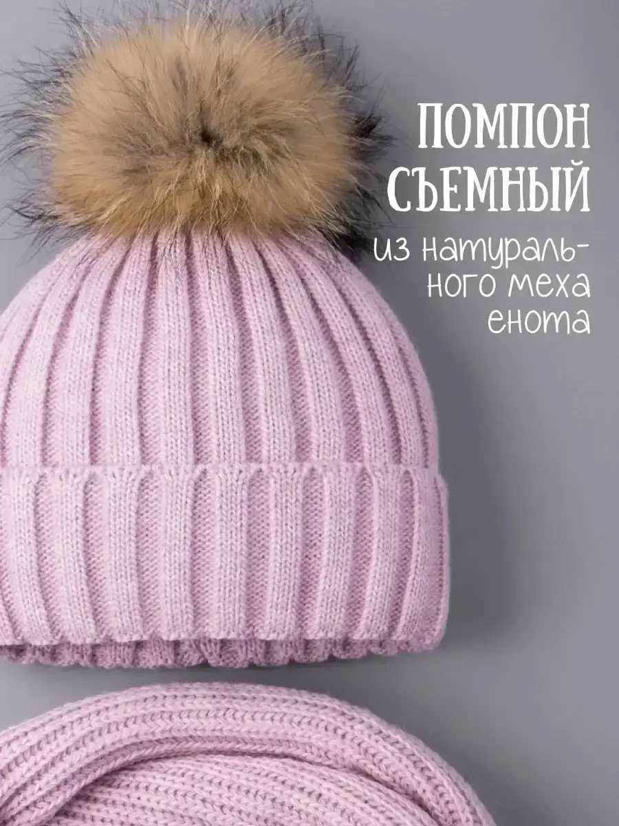 Шапка детская зимняя без завязок и снуд от бренда Ok Top - это отличное решение на зиму и холодную осень! Вязаная шапочка с отворотом утеплена подкладкой из флиса, мягкая и очень теплая, она не даст замерзнуть Вашему ребенку даже в сильные морозы. Модель представлена в классическом стиле в разных цветах, поэтому подойдет как для мальчика, так и для девочки. Помпон из натурального меха енота можно легко отстегнуть на время ухода за изделием. Чтобы он быстрее распушился рекомендуем подержать его над горячим паром (феном) 2-3 секунды, а затем встряхнуть. Теплый вязаный снуд отлично согревает, хорошо тянется и не колется. Шарф детский надежно защитит от ветра шею малыша. Зимний комплект для детей выполнен из высококачественной гипоаллергенной пряжи, за счет чего он не вызывает раздражения на нежной коже ребёнка. Утепленная зимняя шапка и шарф станут идеальным решением для детей, любящих бег и активные игры в холодное время года! А так же этот комплект незаменим для школы или детского садика.