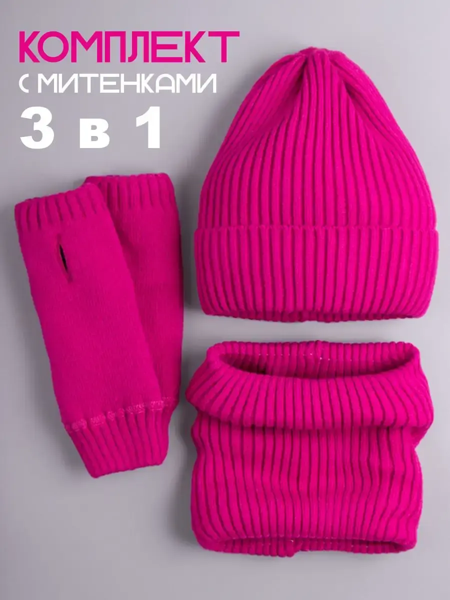 Шапка зимняя для девочек и мальчиков в комплекте со снудом и митенками станет отличным решением для зимы и поздней осени. Благодаря универсальному дизайну детский головной убор подойдет как для мальчика, так и для девочки. Детский комплект хорошо сидит на голове, плотно закрывает уши и лоб, защищая от холода и ветра. Митенки для детей утеплены внутри подкладкой из флиса, поэтому легко заменят варежки, только они более практичные, особенно при использовании телефона. Детский снуд прекрасно тянется, его можно надевать как под верхней одеждой, так и поверх нее. Головной убор для малышей и подростков выполнен из высококачественной гипоаллергенной пряжи, за счет чего не колется и не вызывает раздражения на нежной коже ребёнка. Широкий размерный ряд позволит выбрать подходящий вариант. Вязаную детскую шапку и шарф можно носить в качестве комплекта, а также сочетать с другими аксессуарами. Базовый вязаный комплект для детей дополнит любой образ Вашего ребенка! Шапочка для малышей отлично подойдет как для повседневной носки, так и для активного отдыха на свежем воздухе. Выбирайте детские шапки для любого возраста: у нас есть модели на 3 года, 4 года, 5 лет, 6 лет, 7 лет, 8 лет, 9 лет и 10 лет