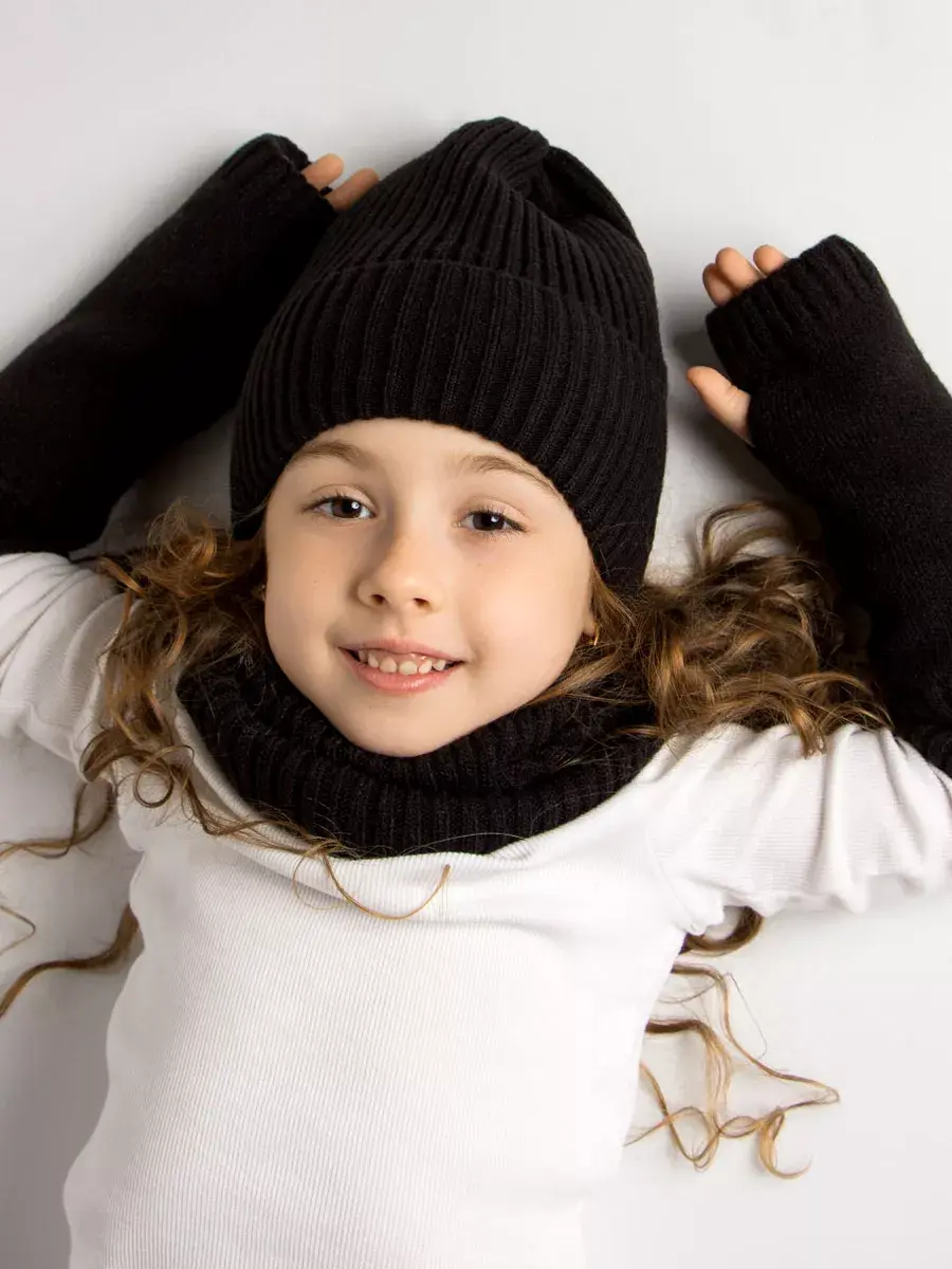Шапка зимняя для девочек и мальчиков в комплекте со снудом и митенками станет отличным решением для зимы и поздней осени. Благодаря универсальному дизайну детский головной убор подойдет как для мальчика, так и для девочки. Детский комплект хорошо сидит на голове, плотно закрывает уши и лоб, защищая от холода и ветра. Митенки для детей утеплены внутри подкладкой из флиса, поэтому легко заменят варежки, только они более практичные, особенно при использовании телефона. Детский снуд прекрасно тянется, его можно надевать как под верхней одеждой, так и поверх нее. Головной убор для малышей и подростков выполнен из высококачественной гипоаллергенной пряжи, за счет чего не колется и не вызывает раздражения на нежной коже ребёнка. Широкий размерный ряд позволит выбрать подходящий вариант. Вязаную детскую шапку и шарф можно носить в качестве комплекта, а также сочетать с другими аксессуарами. Базовый вязаный комплект для детей дополнит любой образ Вашего ребенка! Шапочка для малышей отлично подойдет как для повседневной носки, так и для активного отдыха на свежем воздухе. Выбирайте детские шапки для любого возраста: у нас есть модели на 3 года, 4 года, 5 лет, 6 лет, 7 лет, 8 лет, 9 лет и 10 лет