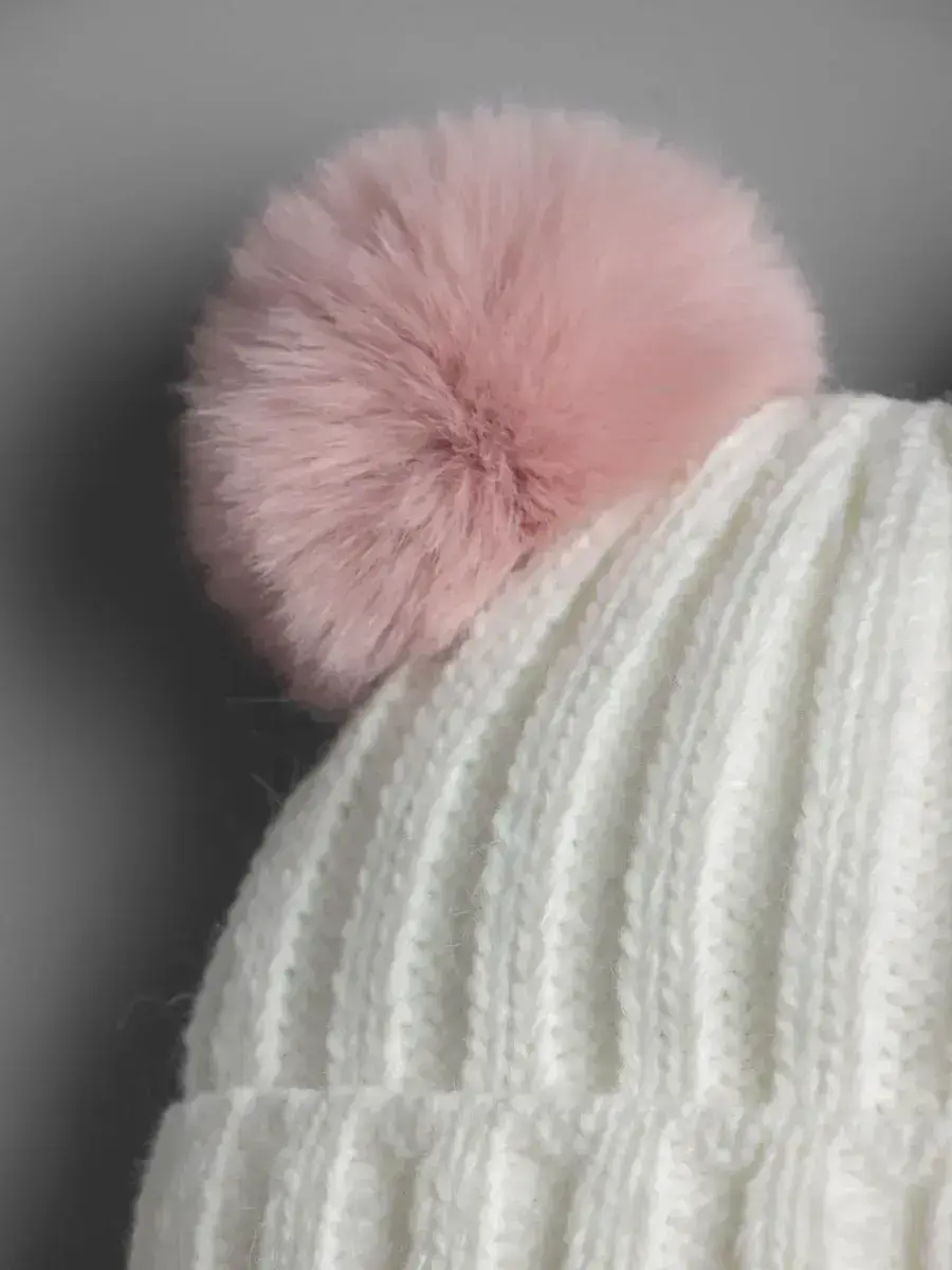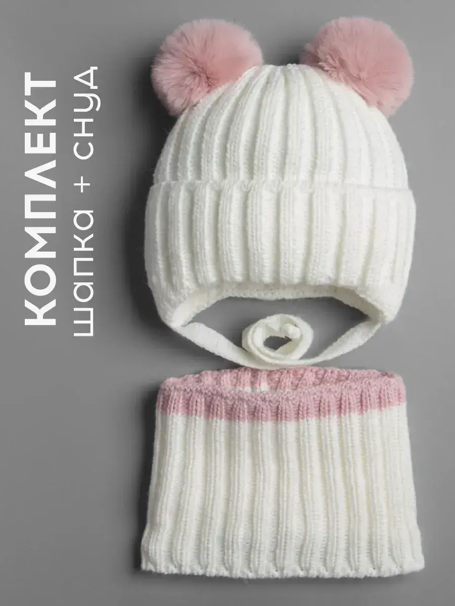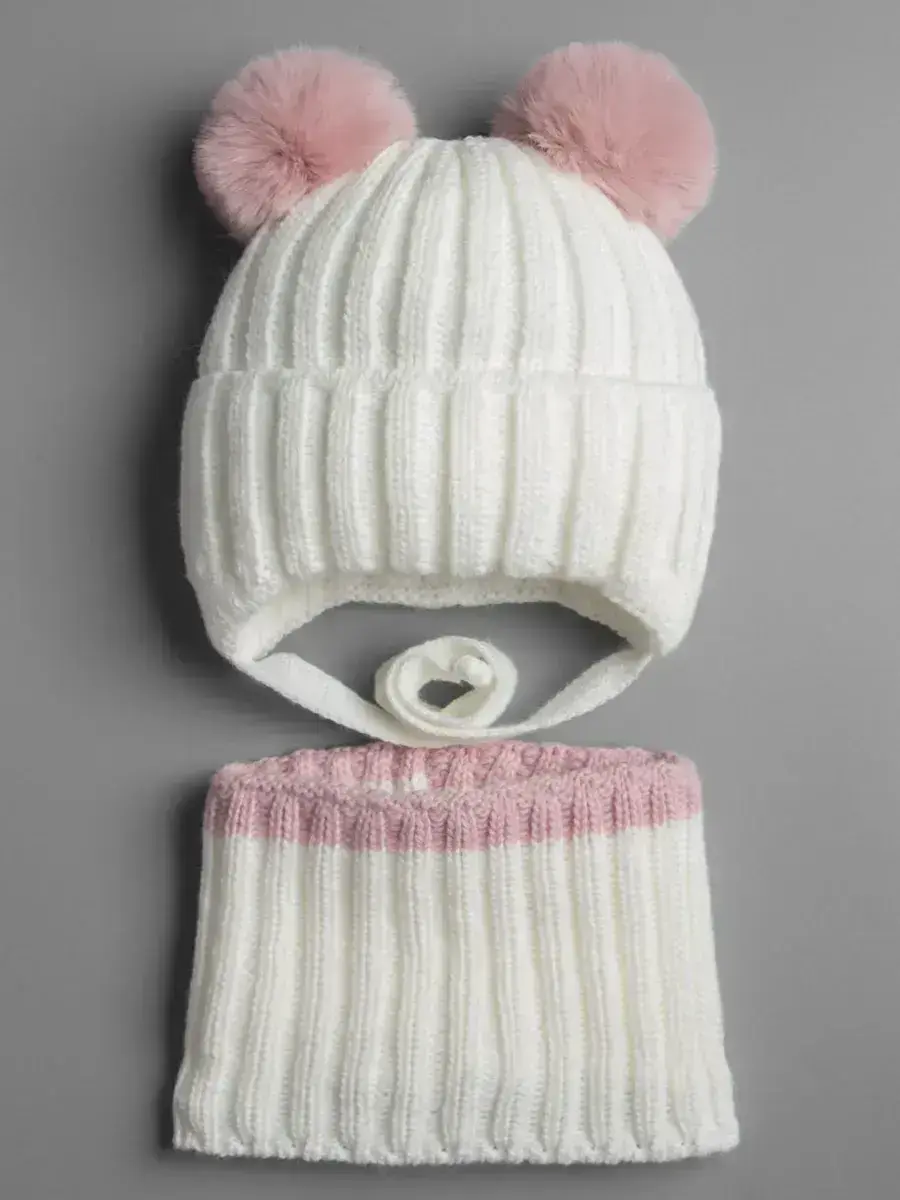 Помпоны добавляют игривости и уникальности. Расположенные на вершине шапки, они создают забавный образ и нравятся маленьким модницам. Данный детский комплект идеален для школы и детского сада.