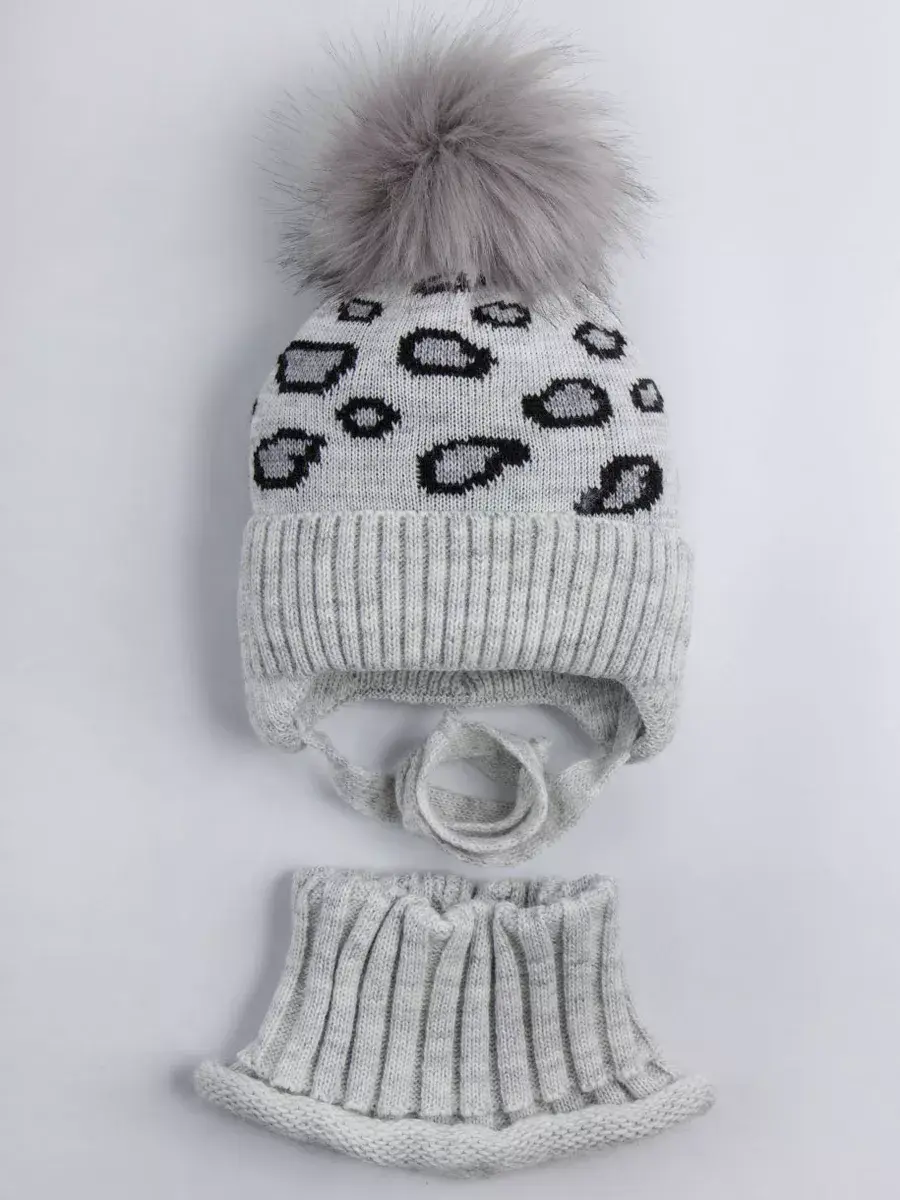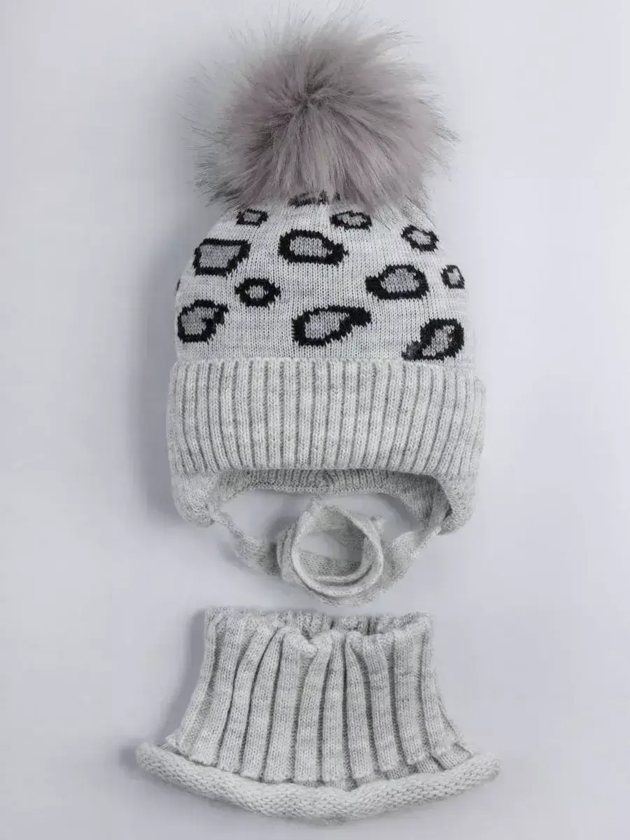 Шапка зимняя вязаная с помпоном и манишкой – отличный выбор для маленьких модниц! Этот стильный головной убор выполнен из высококачественного материала – теплого и мягкого полотна, которое нежно облегает голову ребенка и защищает ее от холода. Утепление синтепоном (который спрятан под хлопковой подкладкой) дарит комфорт даже в сильные морозы от -5 до -25С. Шапочка для девочки дополнена симпатичным помпоном из искуственного меха, который добавляет модный акцент и индивидуальности образу. Манишка детская не колется, хорошо согревает шею и плечи. Снуд легко растягивается и малыш может без труда надевать и снимать его самостоятельно. Благодаря большому размерному ряду, модель подойдет малышкам от шести месяцев до десяти лет. Трендовые расцветки помогут выбрать комплект под любой гардероб. Натуральный подклад из 100% хлопка внутри изделия надолго сохраняет тепло и не позволяет голове вспотеть. Наличие завязок поможет подогнать шапку по размеру, обеспечив надежную фиксацию на время активных игр. Широкий плотный отворот отлично закрывает уши и лоб, защищая от ветра. Говоря о дизайне, шапка детская выполнена в леопардовых расцветках, которые являются трендом в этом сезоне. Модель изготовлена из пряжи высокого качества (в составе гипоаллергенный акрил, акрил), которая сохранит первоначальный вид даже после длительной носки. Комплект из шапочки и манишки порадует свою владелицу не только уютом, но и яркостью!