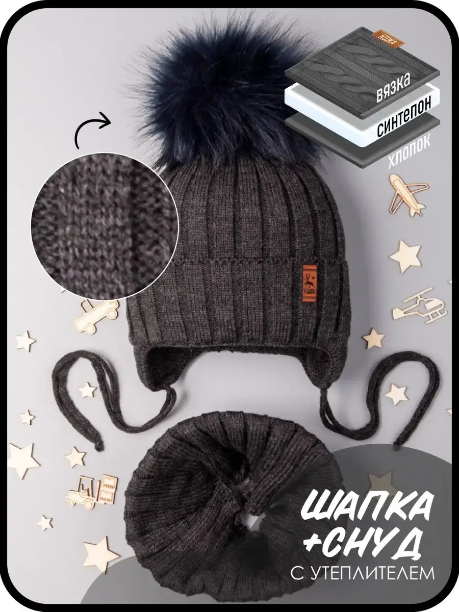 Для того, чтобы изделие прослужило Вам как можно дольше, мы рекомендуем ручную или машинную бережную стирку при t не более 30 С. Зимняя теплая шапка со снудом для мальчика непременно должна быть у Вашего ребенка! Сделано в России.